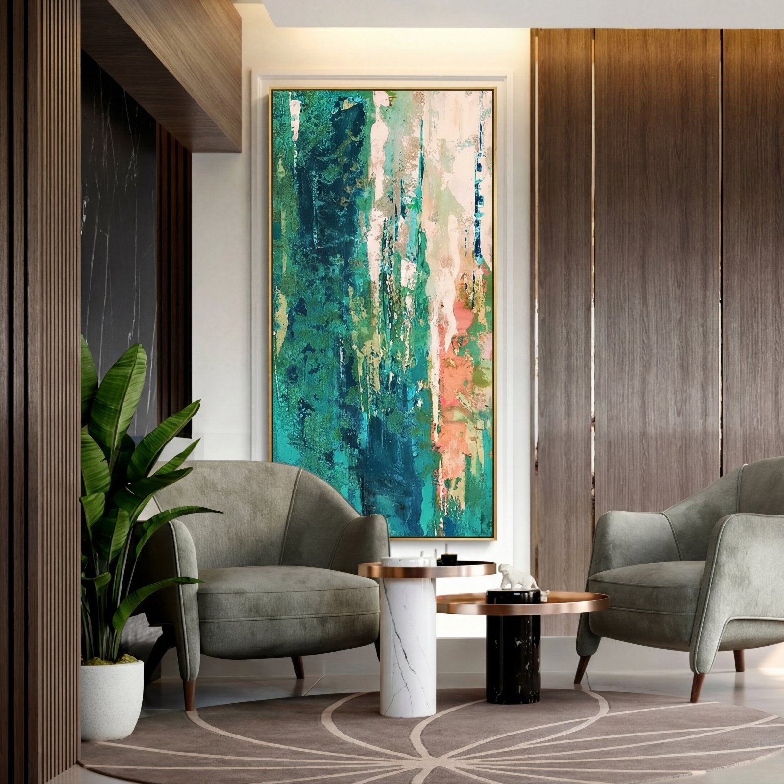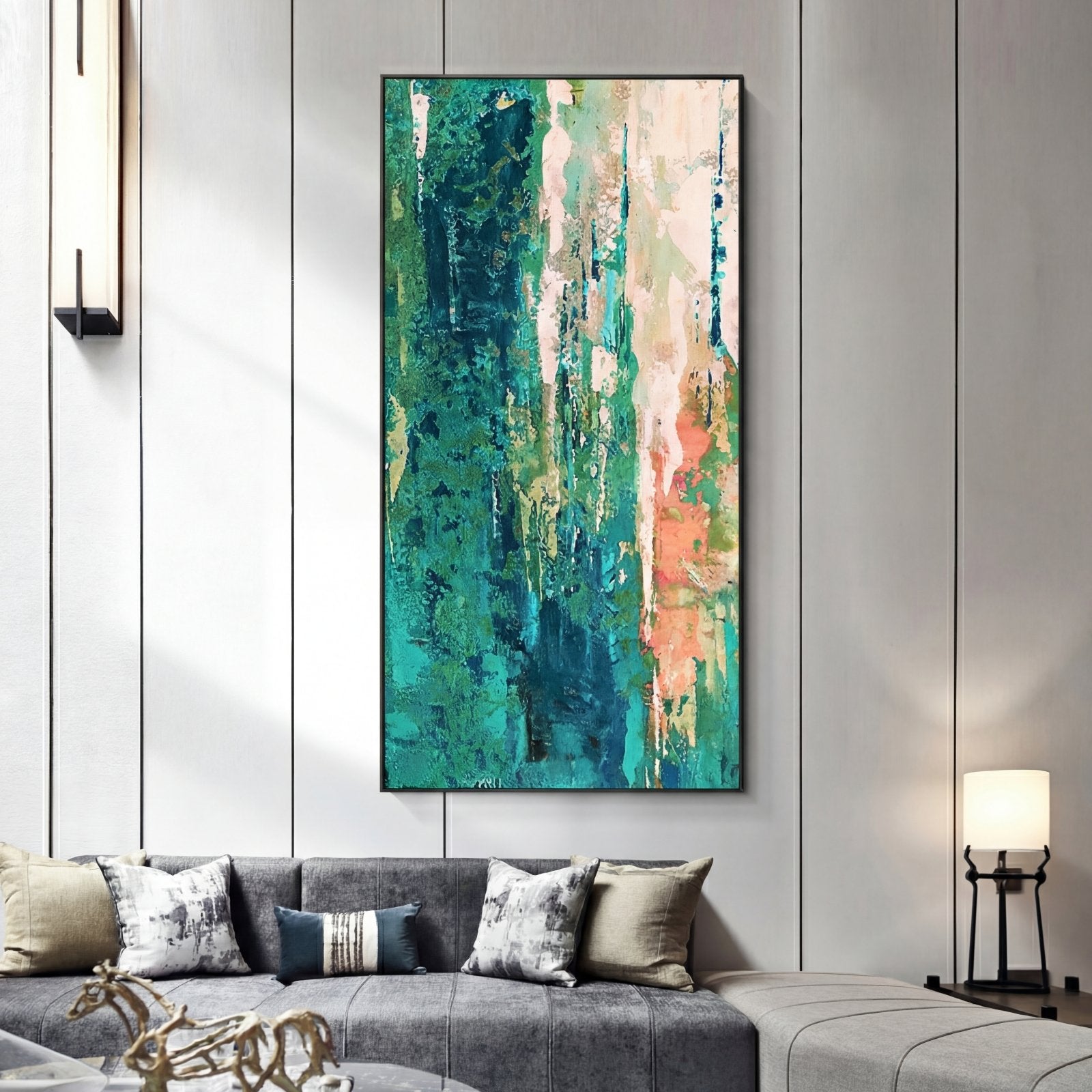 Add a little green to your home with this stunning handmade artwork. A natural, mossy atmosphere is created through the layering of different shades of green on top of each other. Making this piece a natural beauty!