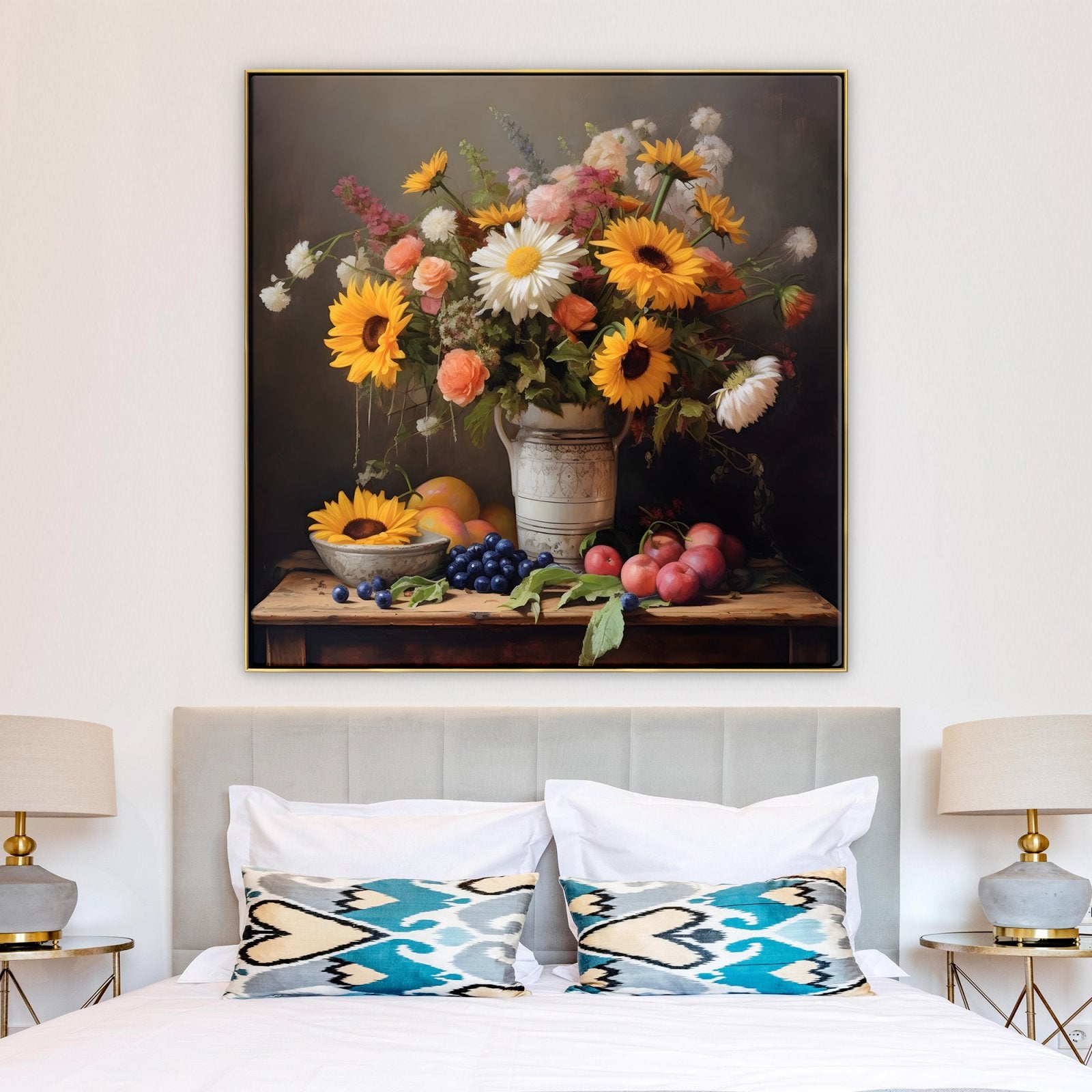 It's as if a living bouquet graces your wall. This stunningly realistic painting captures the essence of fresh flowers, making your space come alive with their vibrant colors and fragrant charm.