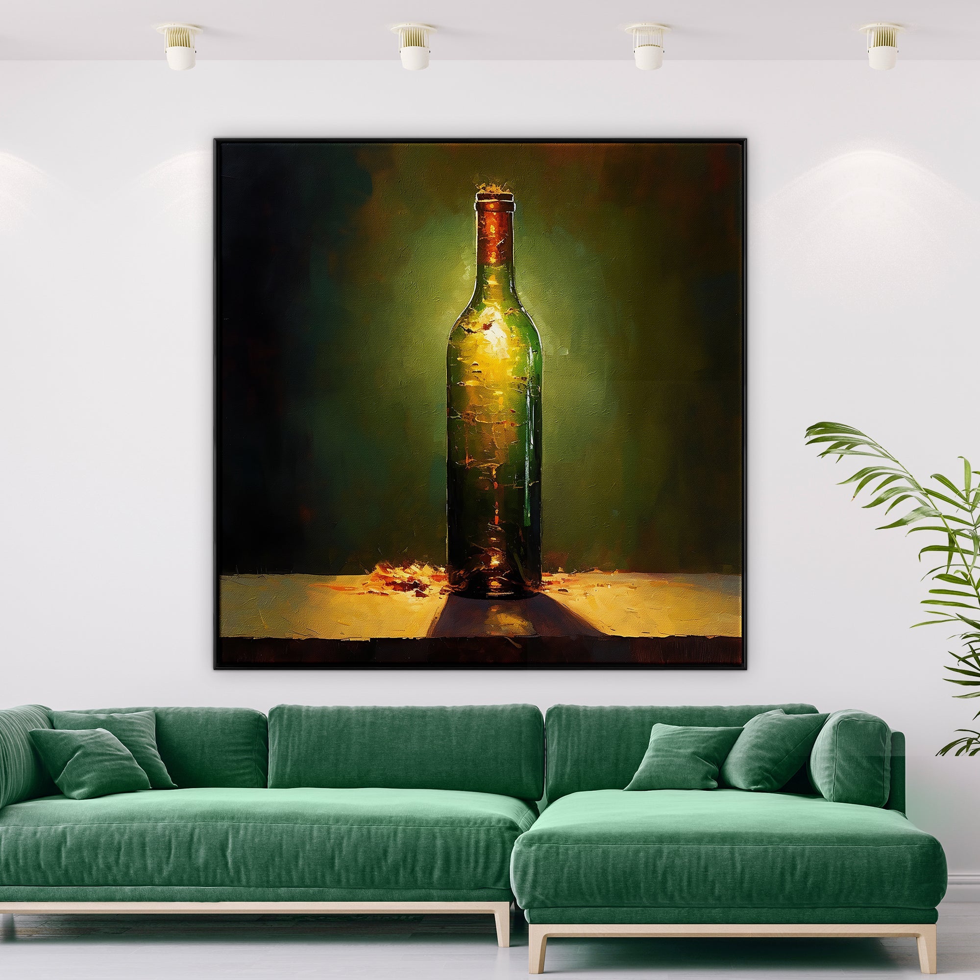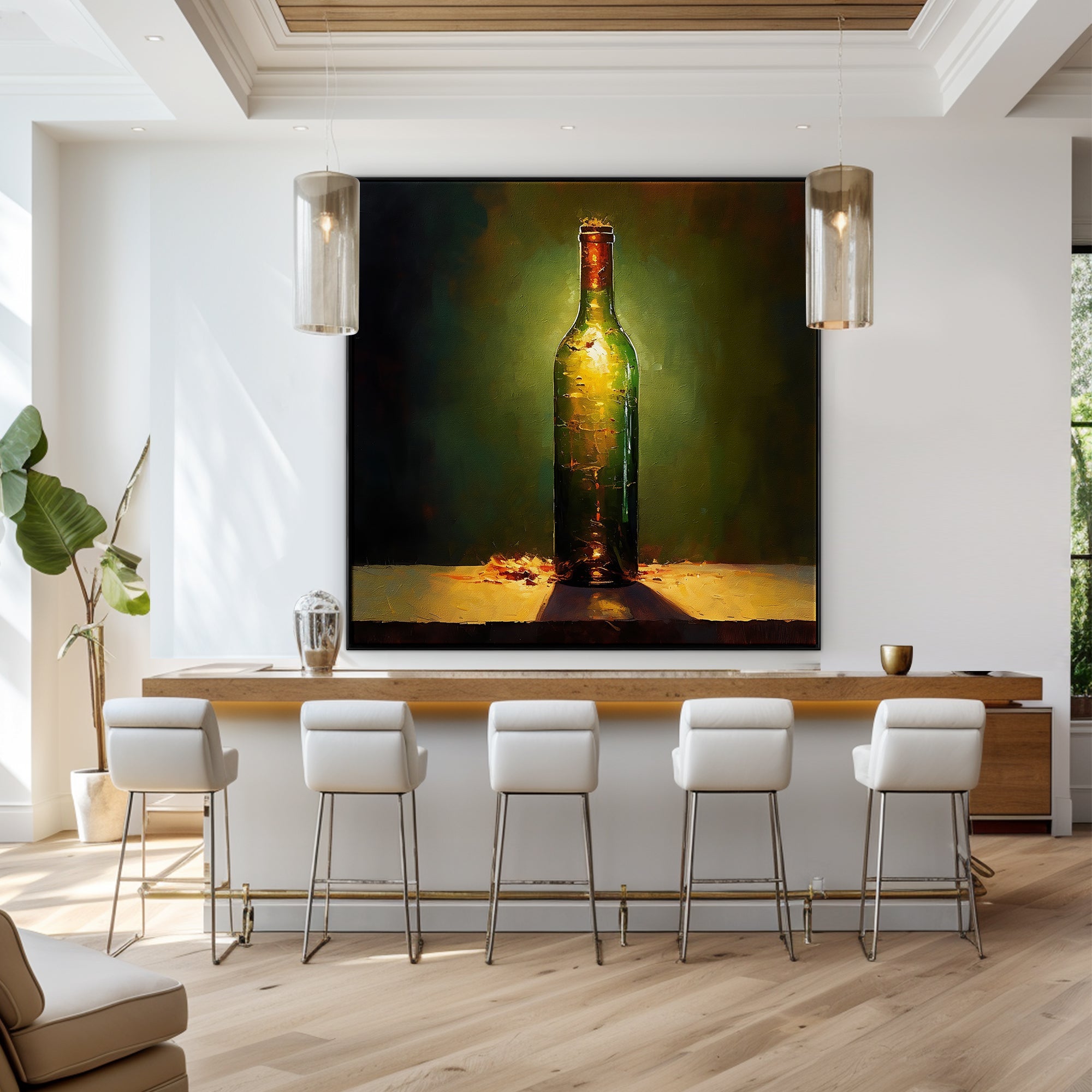 With amazinguse of lighting and a stunning realism-style of painting, this piece really comes alive! Showcasing the beauty of wine through an almost angelic light, this piece adds something special to any space.