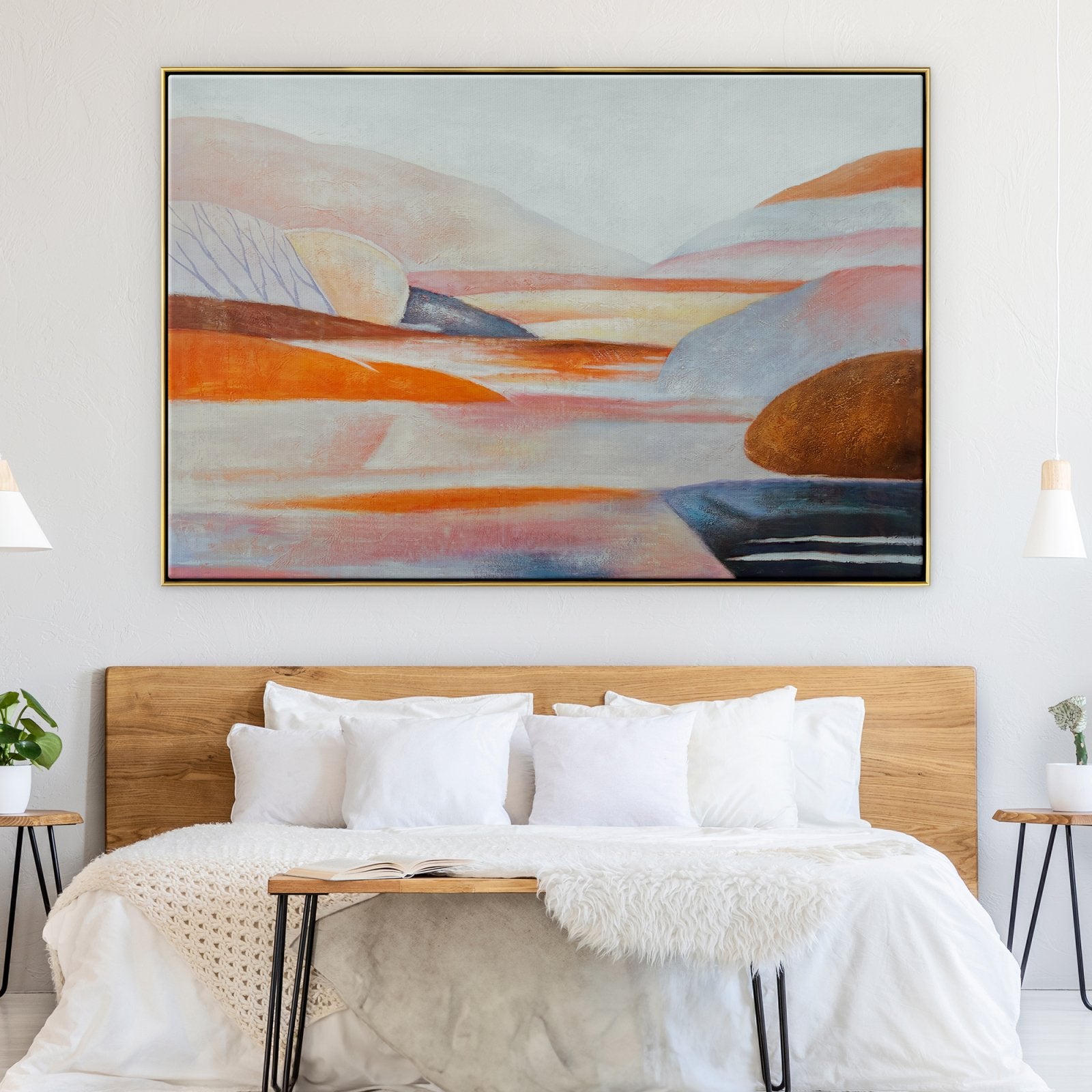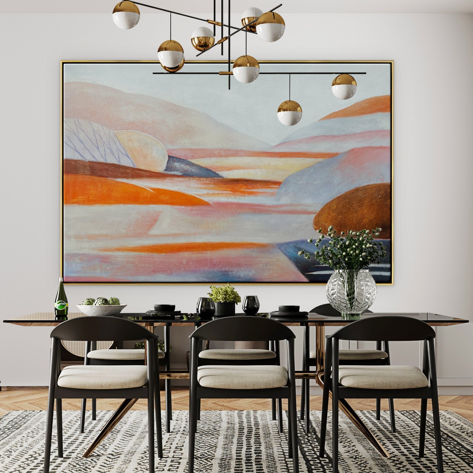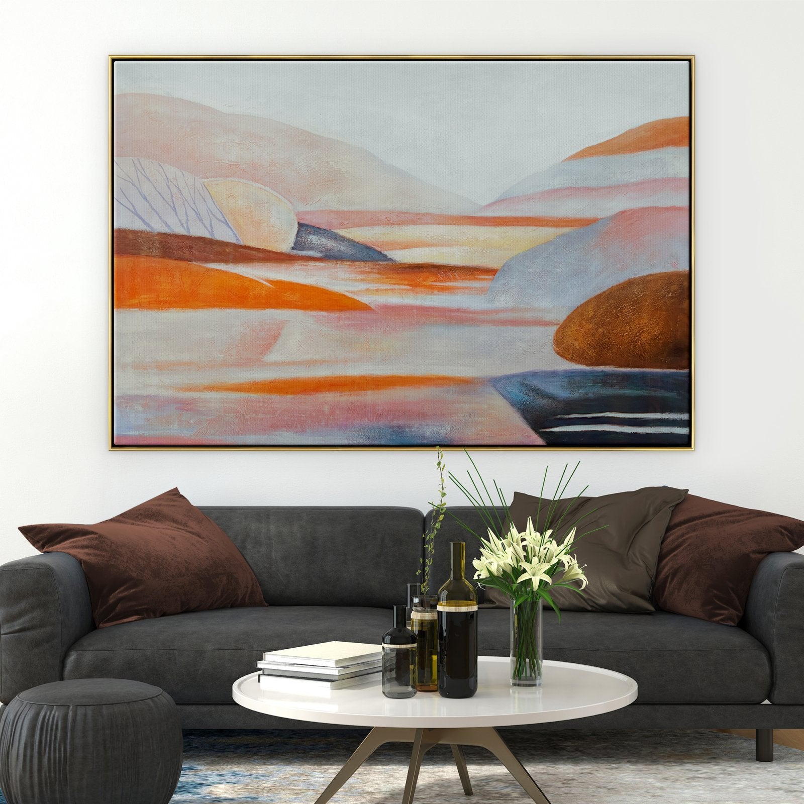 Step inside the magic wonders of the Vast Valley! With a unique style and a distinct color palette, this painting is part of an eccentric new collection. With a valley that stretches out as far as the eye can see, this subtle art piece is a great addition to any home!