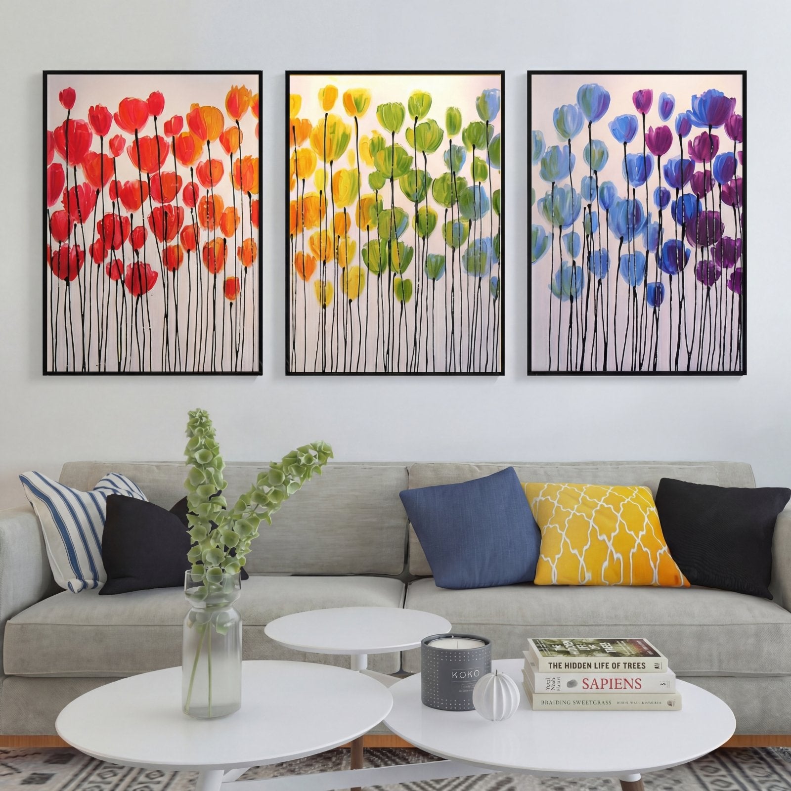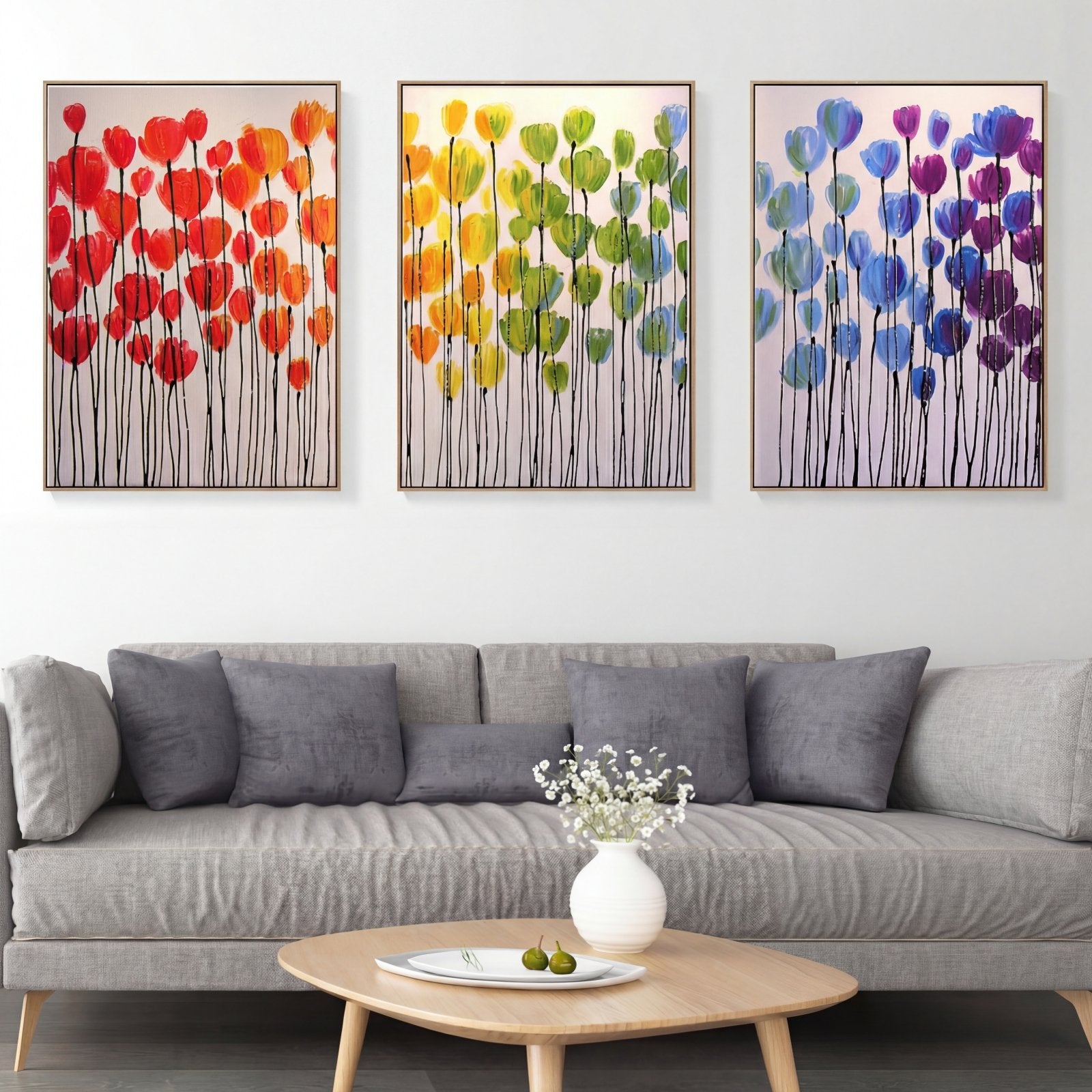 Did you know that the tulip is the national flower of the Netherlands? Inspired by these colorful fields, is this vibrant canvas set ‘Tulip’. The rainbow of colors makes this set always stand out, like a flower in a field!