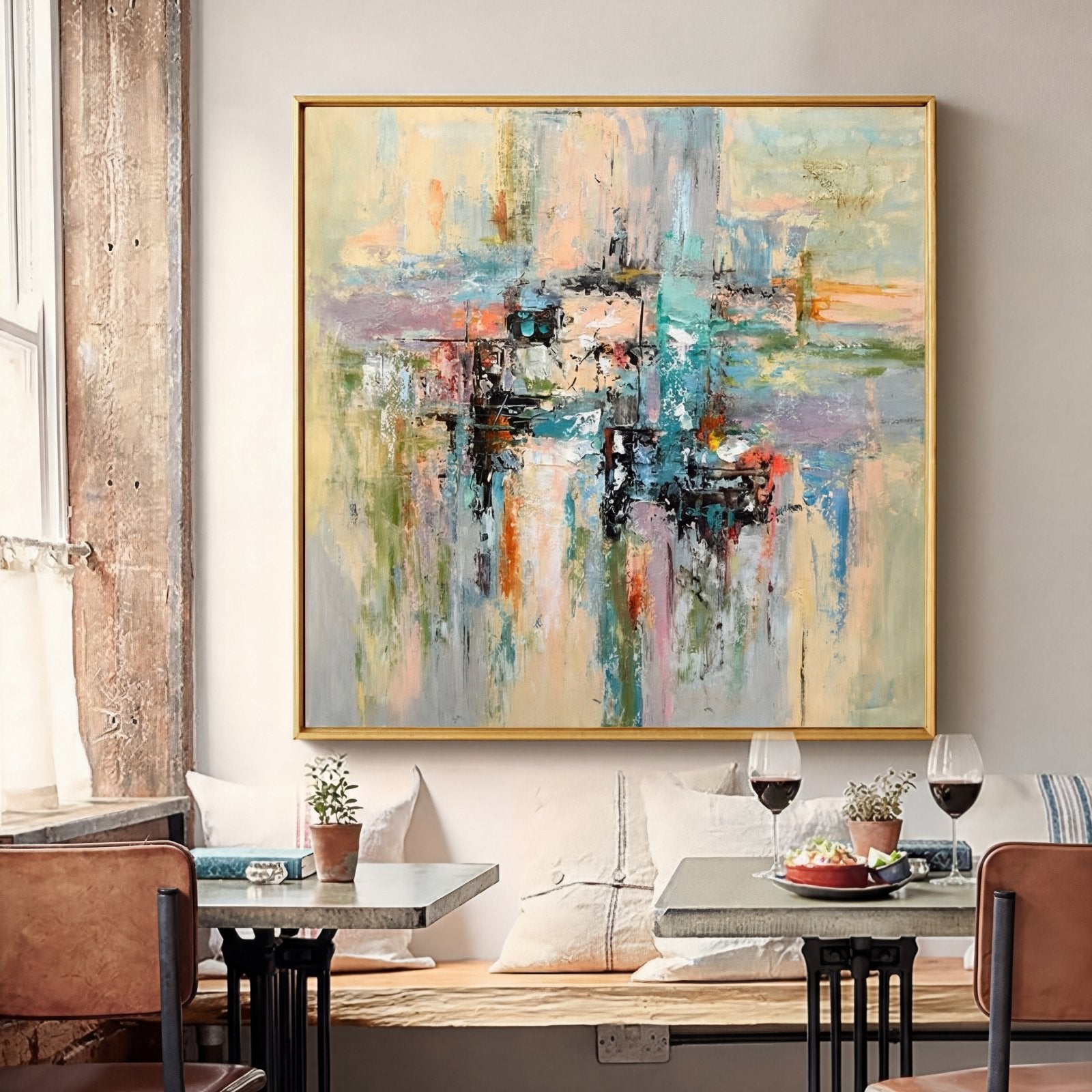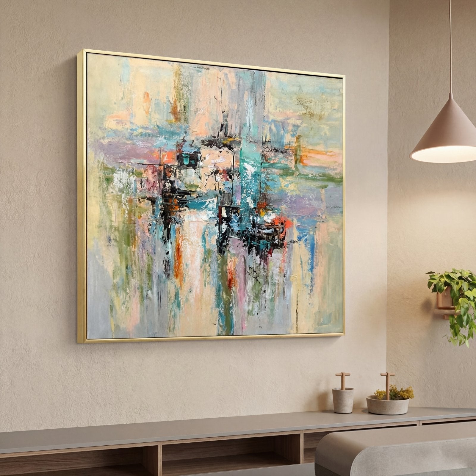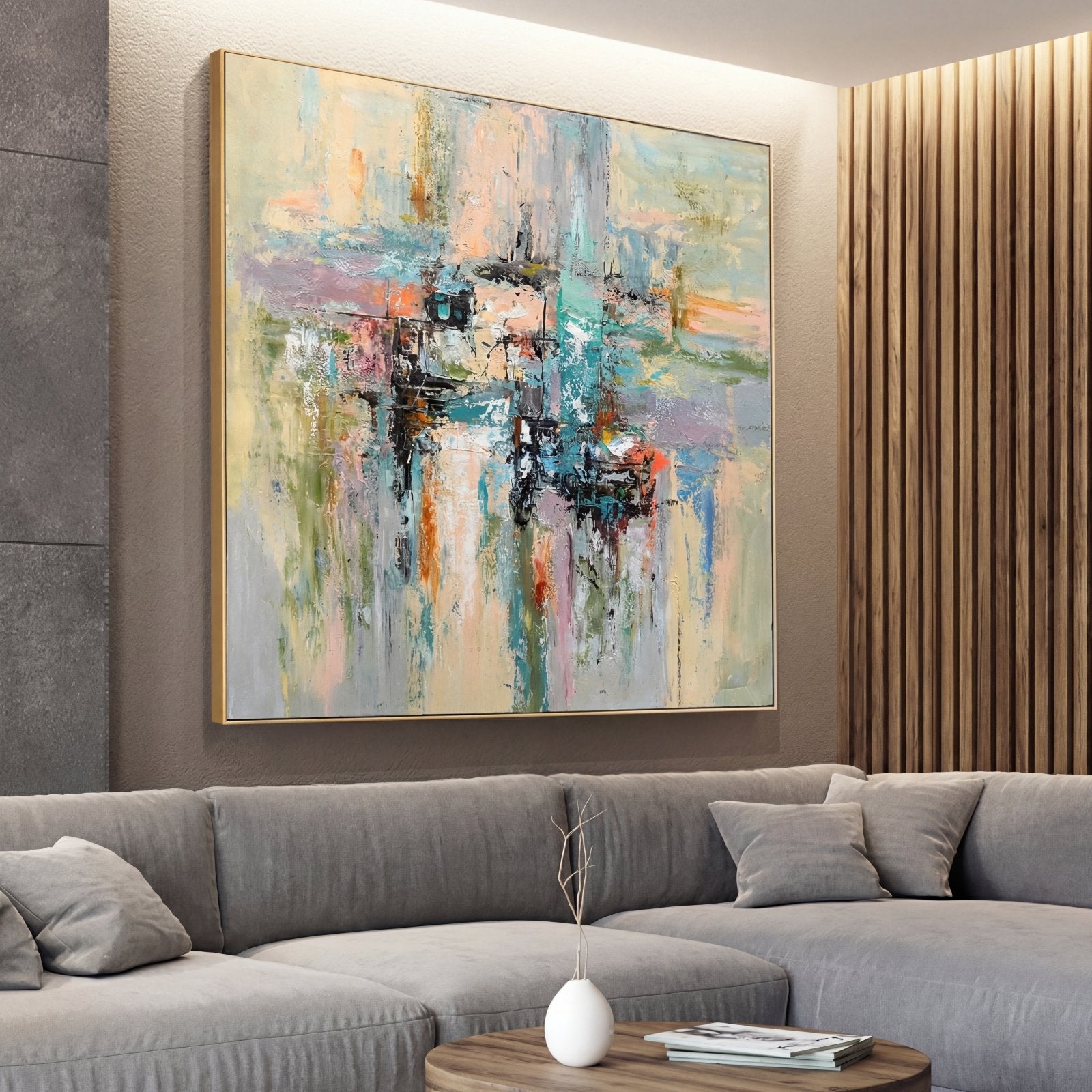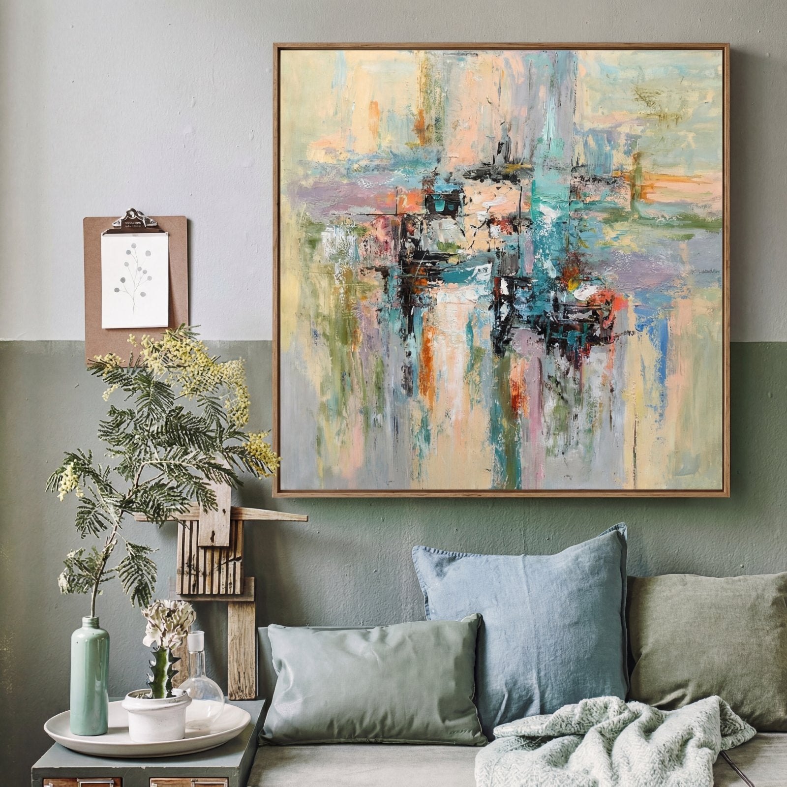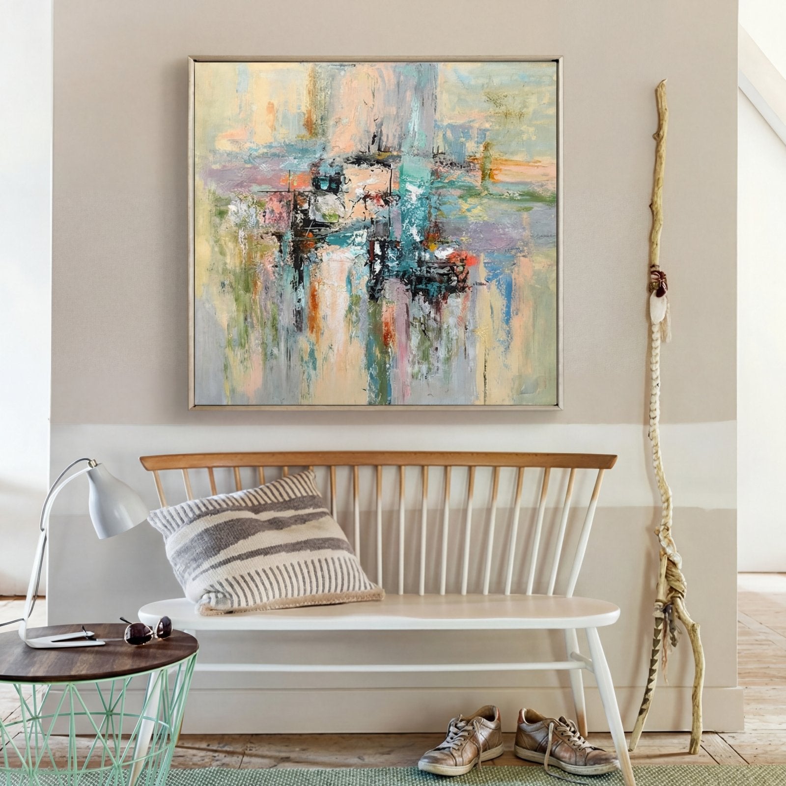 We all have different ideas of a utopia, a perfect promised land where all our dreams come true. This magnificent abstract art piece tries to paint this ideal picture. With loads of different colours smoothly flowing into each other, this painting will always surprise you!