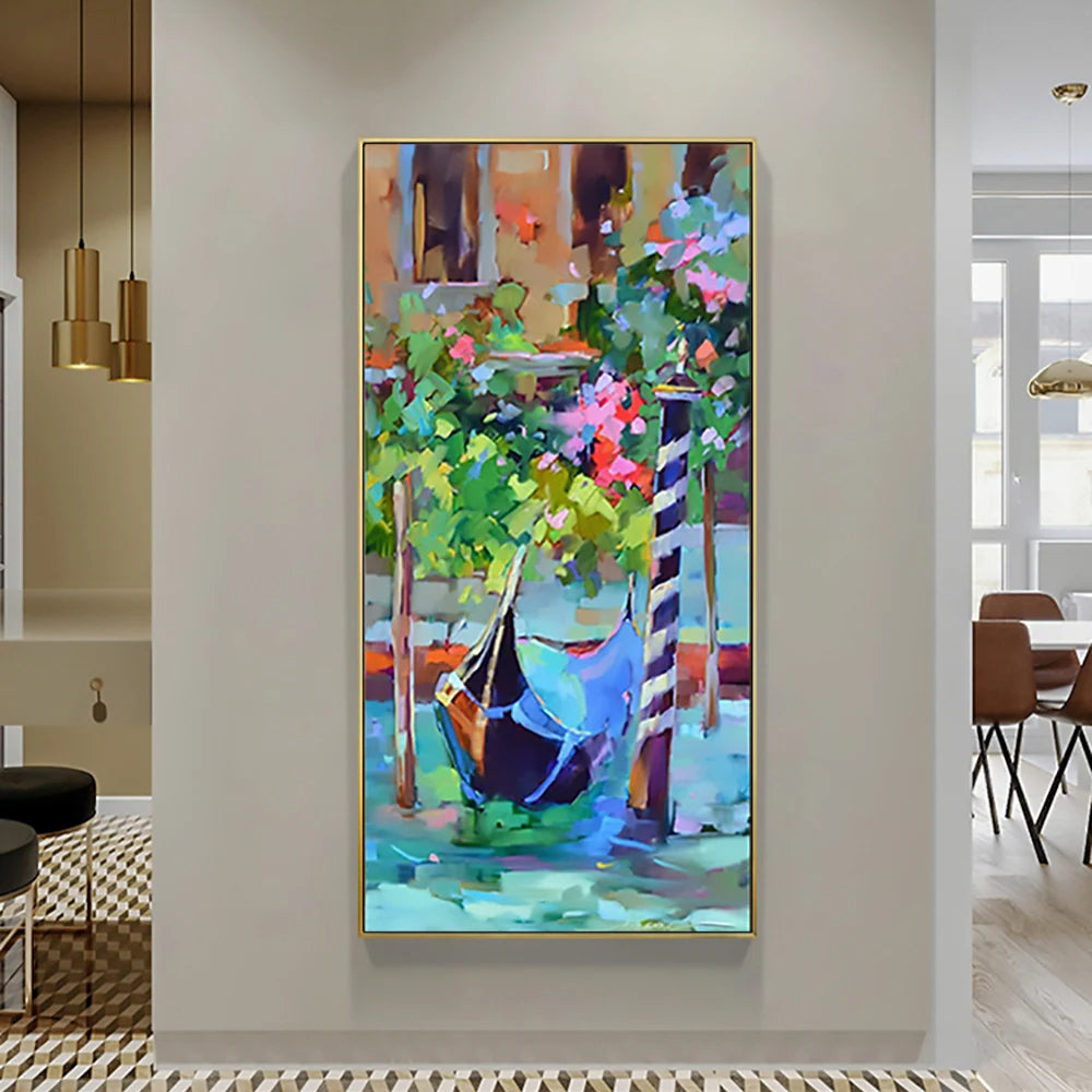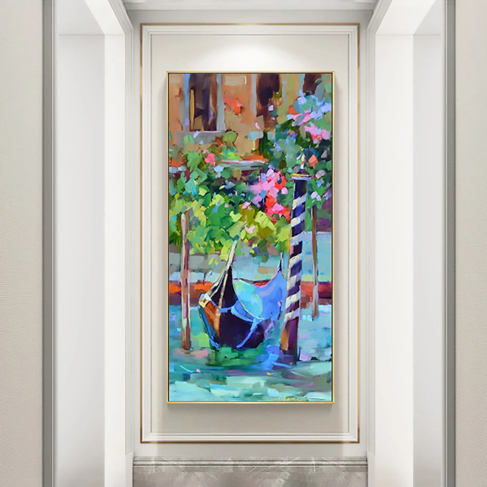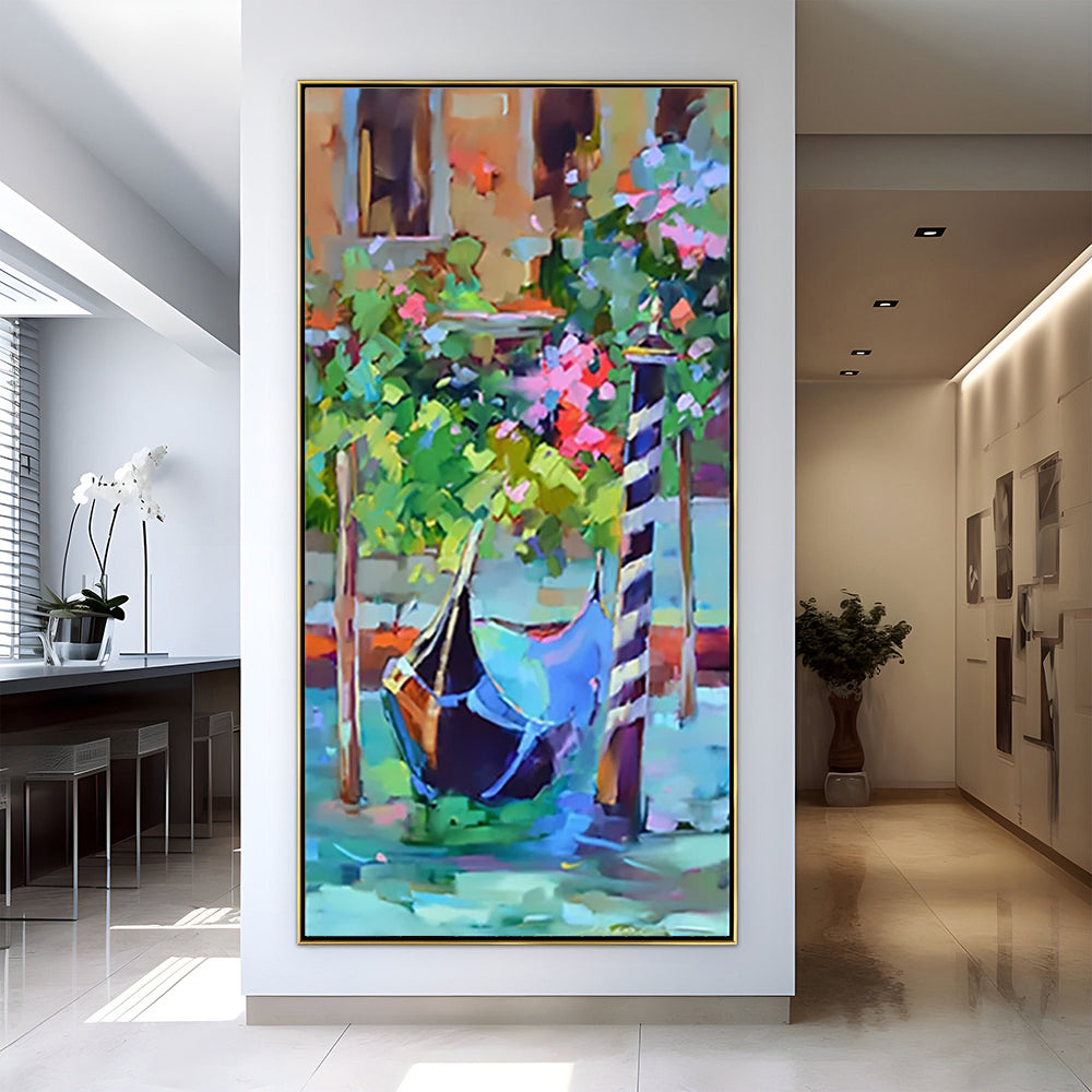 With its vibrant colors and dynamic brushwork, "Venice" brings the spirit of the iconic city to life. Inspired by the unique boats that sail beautifully across the city's canals, it captures the essence of Venetian class in style.