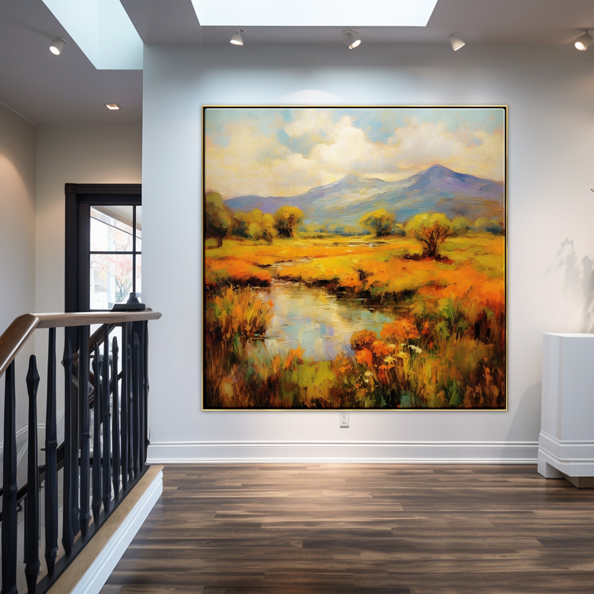 This painting takes you to the beautiful, Yellow Fields on a warm, sunny day. The impressionistic brushstrokes and vibrant texture create a cozy and welcoming atmosphere anywhere.