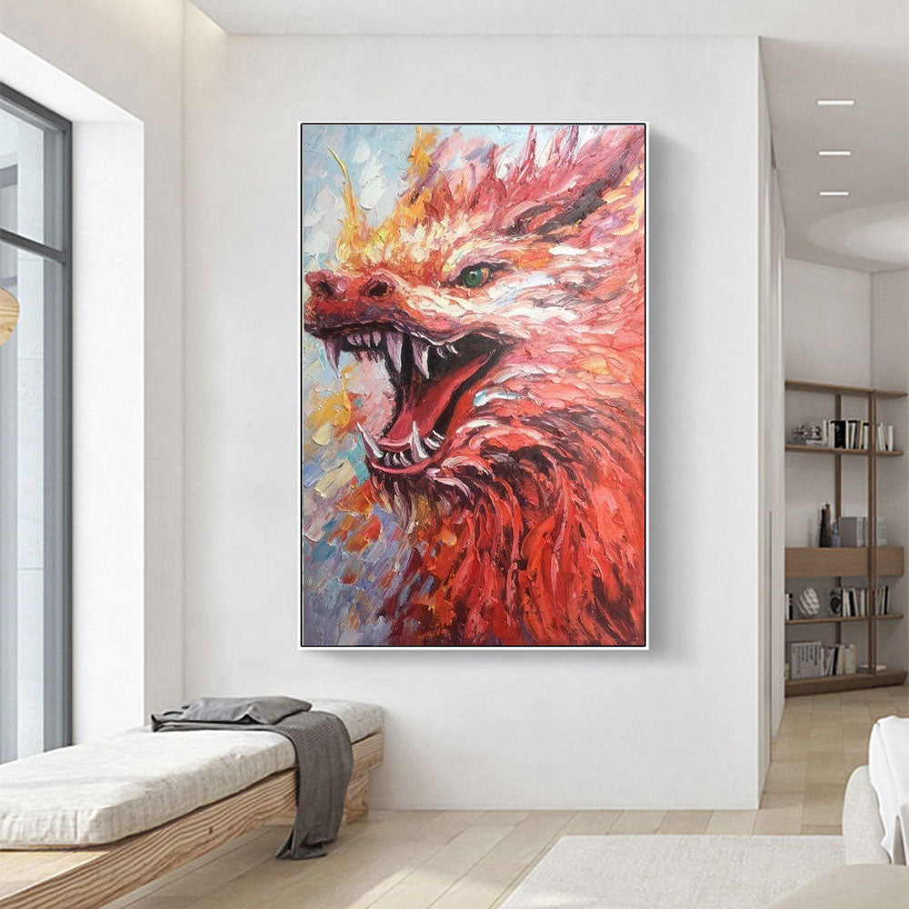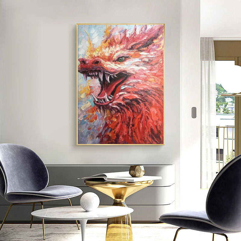 Let Blazewing set your décor ablaze. With its fiery palette and bold brushstrokes, this striking dragon artwork infuses any room with energy and intensity, making it a focal point anywhere!