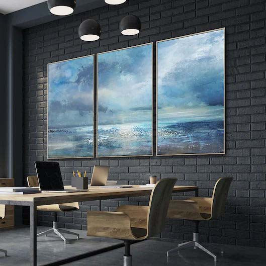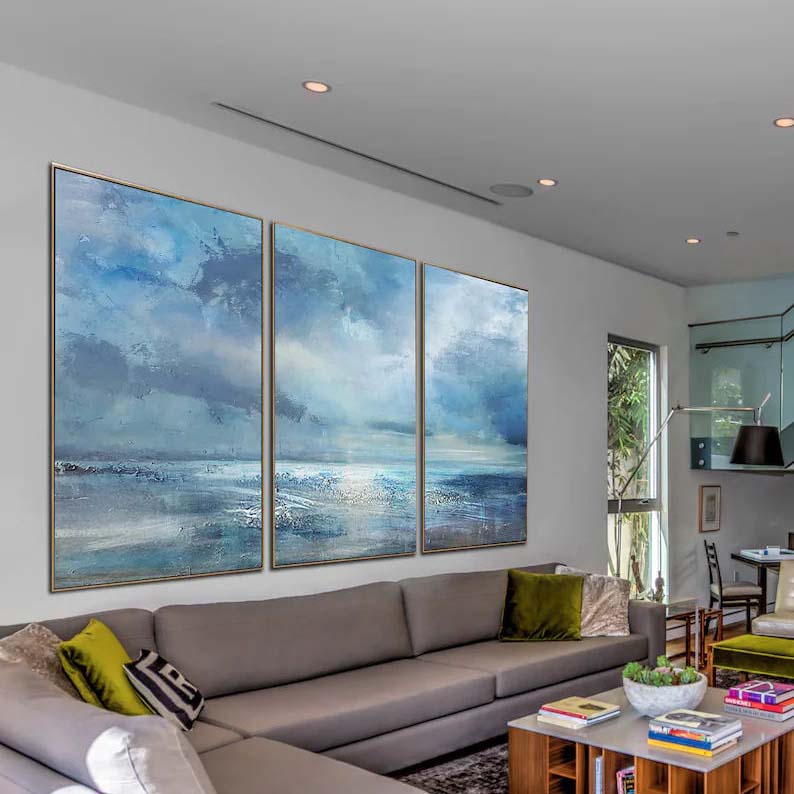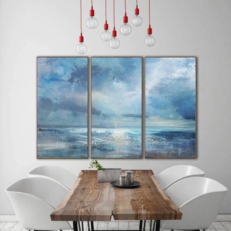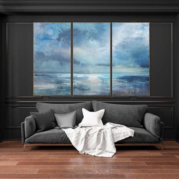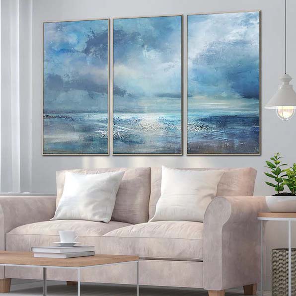 Als Schiffbrüchiger auf einer einsamen Insel mitten im Ozean zu sein, hat etwas Utopisches, aber auch Einsames. Dieses erstaunliche Leinwandset fängt dieses Gefühl wunderbar ein und schafft eine magische maritime Atmosphäre, wo auch immer das Triptychon ausgestellt wird!