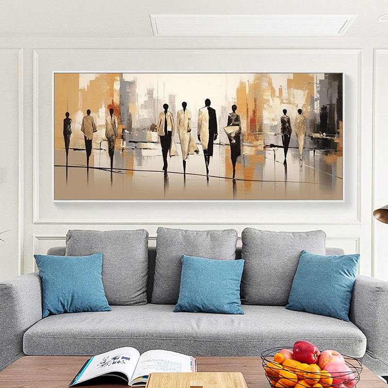 Embrace the vibrancy of City Life. This painting embodies the elegance and dynamism of urban living, with striking figures and a lively cityscape. Perfect for bringing the big city to your home!