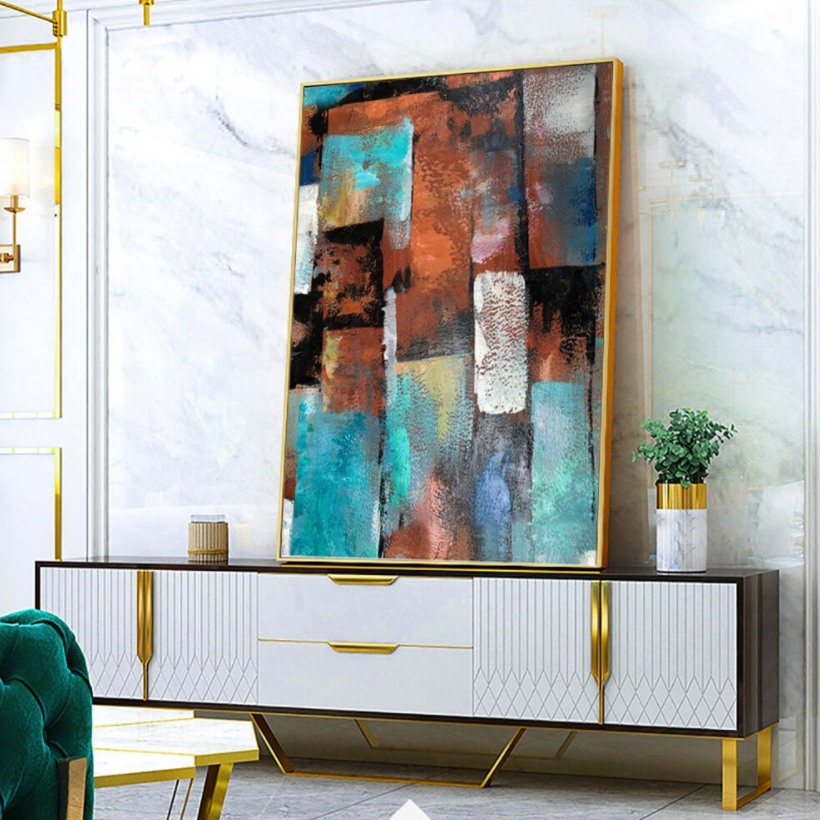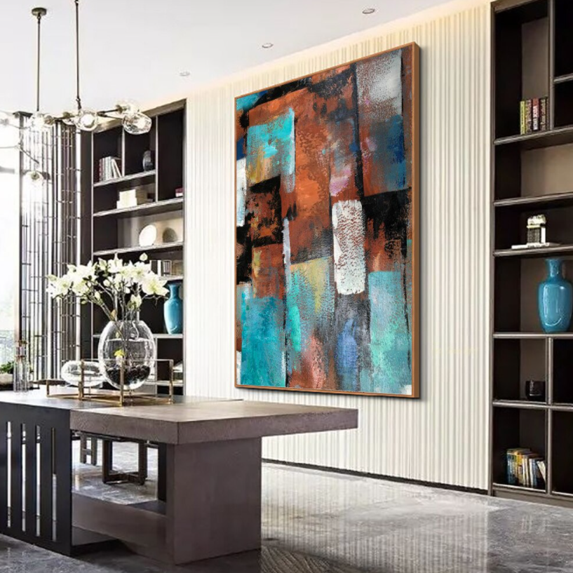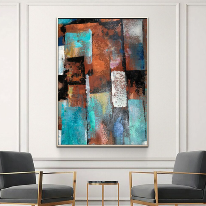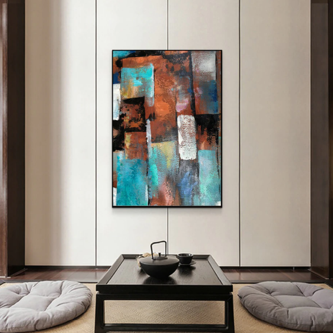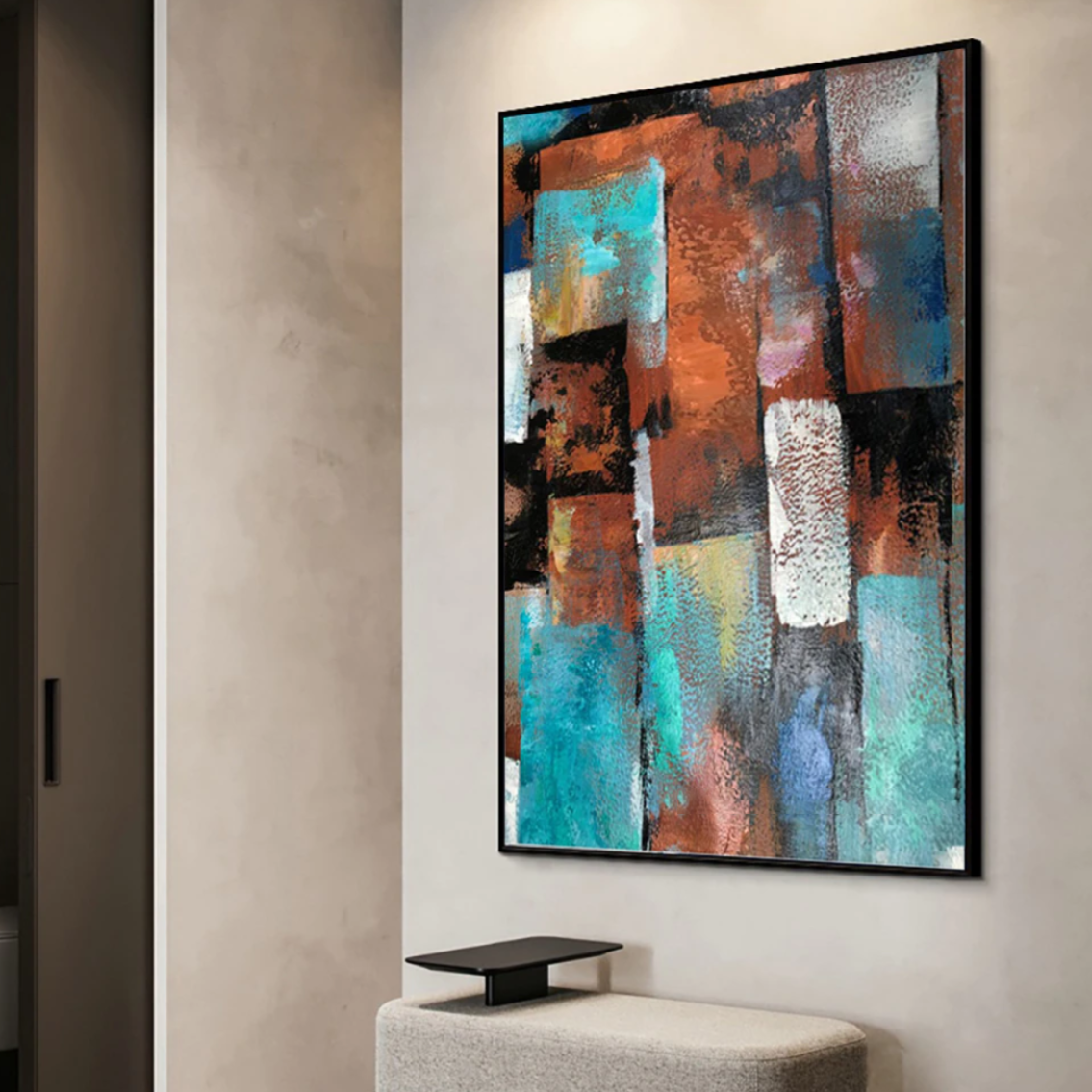 Was dieses handgefertigte Gemälde so einzigartig macht, ist, dass jeder Teil in ungleiche Quadrate unterteilt ist, die alle ihre eigene Geschichte erzählen. Gleichzeitig versucht das größere Bild, eine andere Geschichte zu erzählen ... Welche Geschichte siehst du?