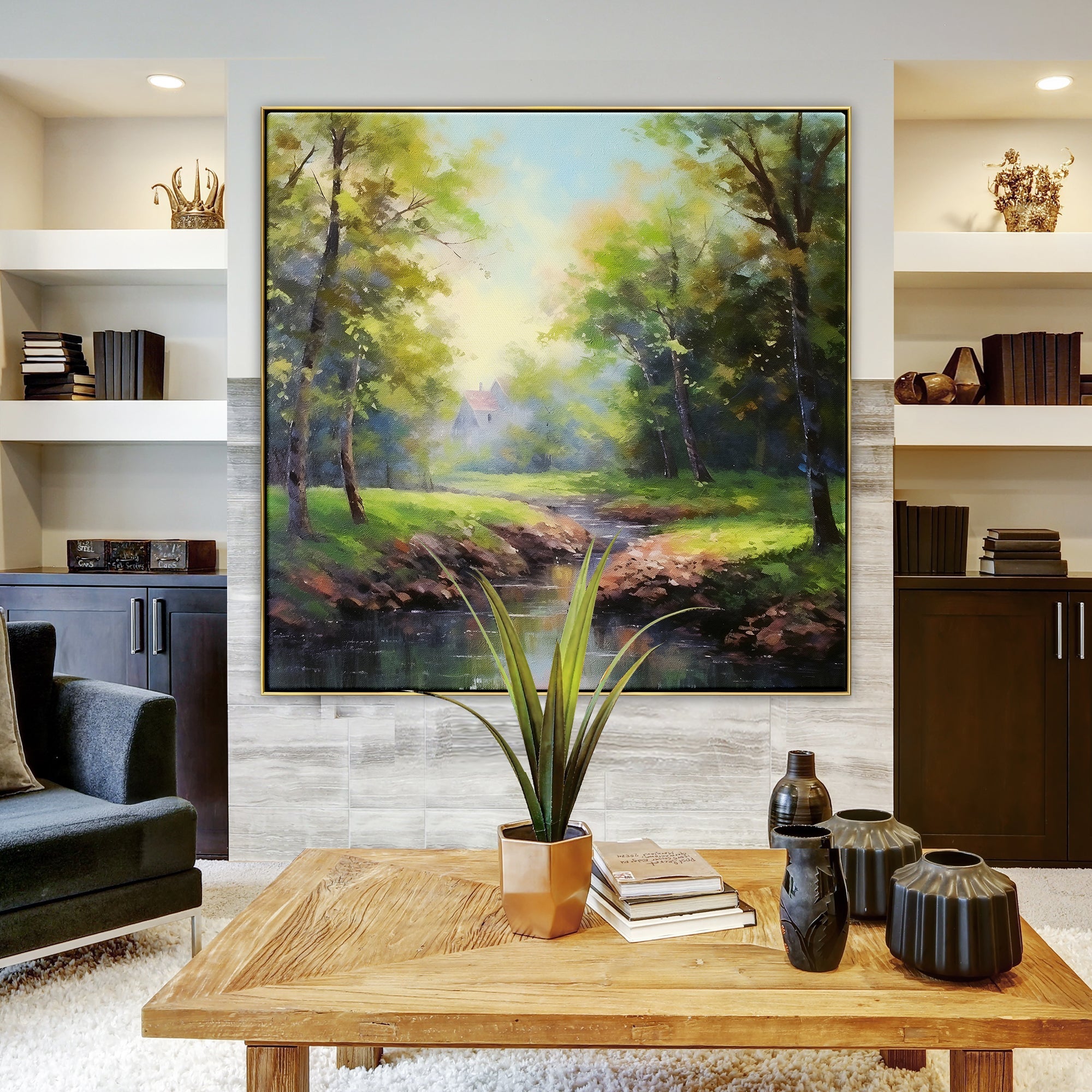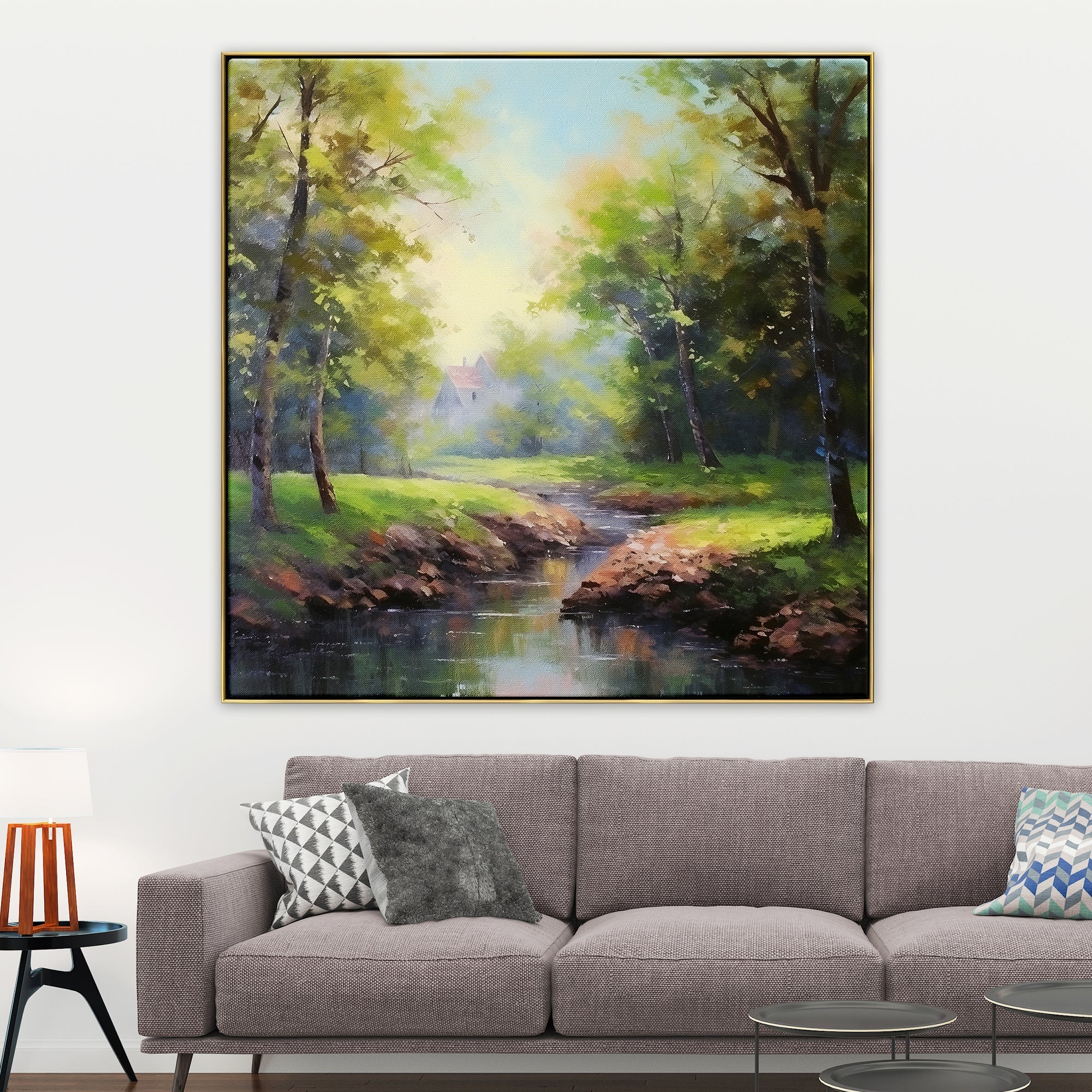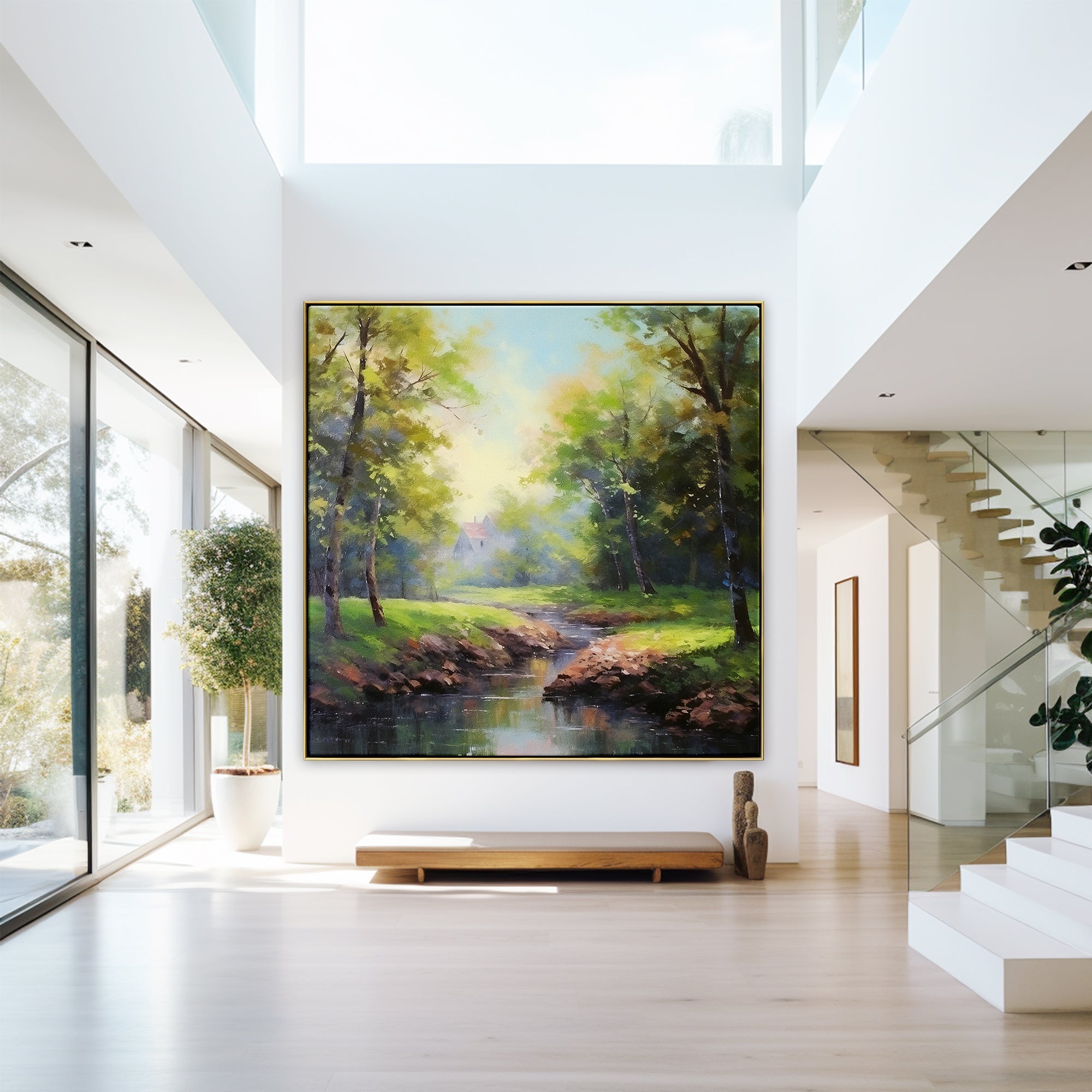Dieses Stück nimmt Sie mit auf eine heitere Reise in das Herz eines üppigen Waldes in Grindelwald. Der friedliche Fluss schlängelt sich durch den Wald und lädt Sie ein, inmitten der Schönheit der Natur zur Ruhe zu kommen.