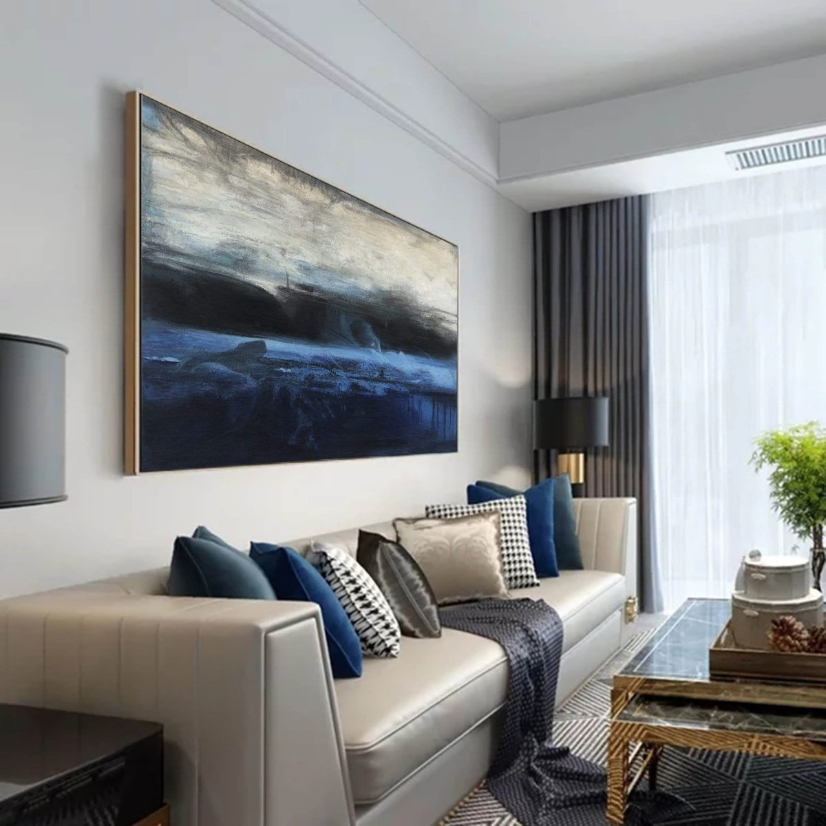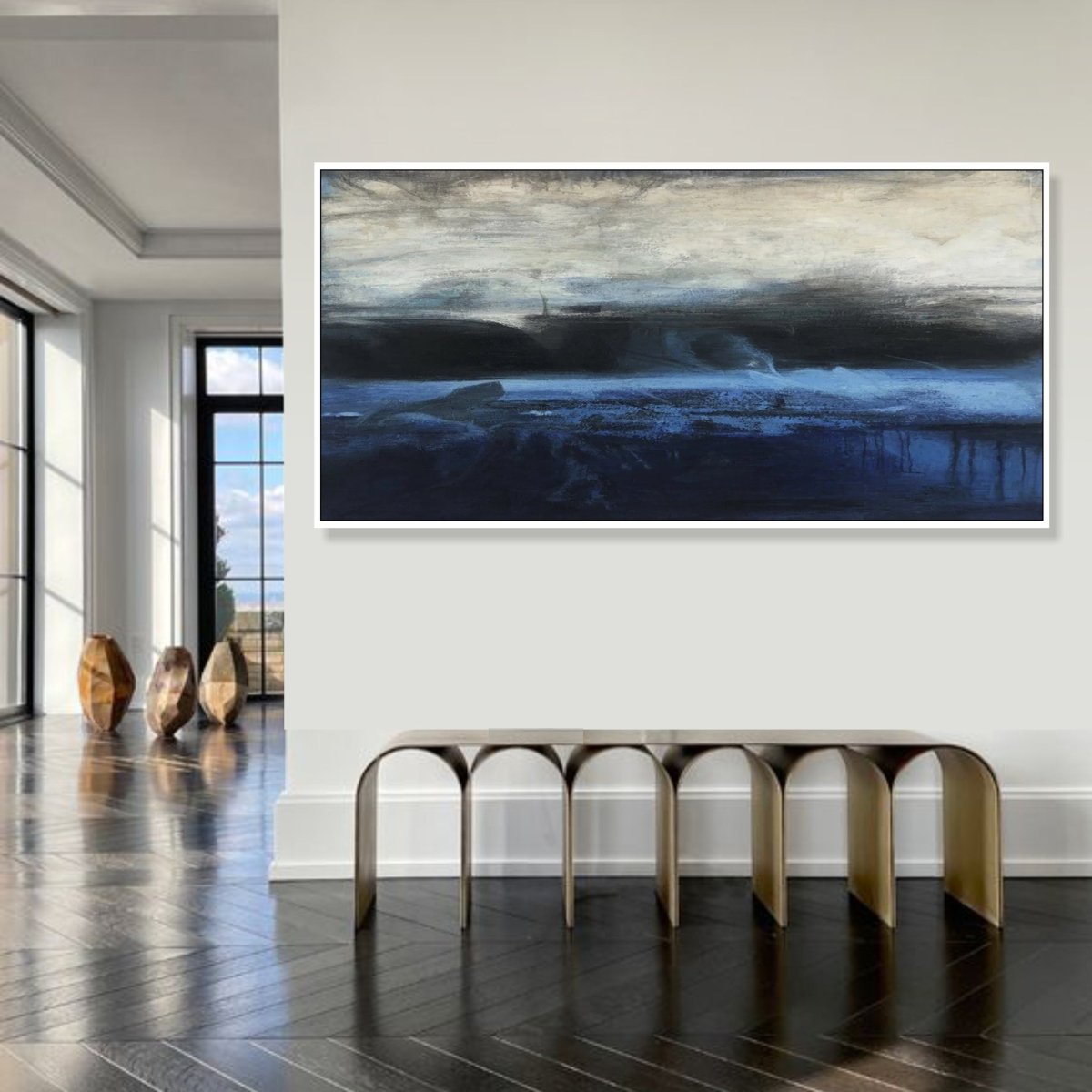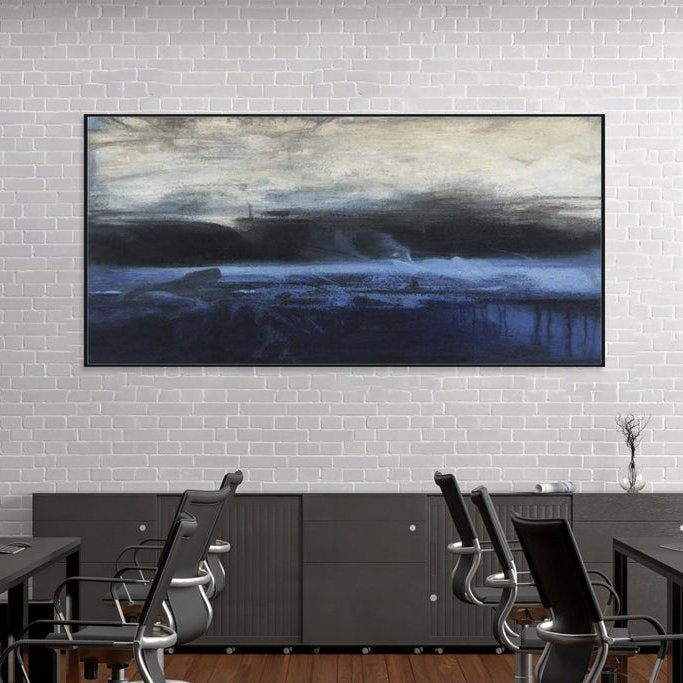 Die Sonne ist aufgegangen und füllt den Morgenhimmel mit ihrem herrlichen Licht. Der Ozean erwacht, noch immer in einer wunderschönen Dämmerung. Dieses abstrakte Kunstwerk fängt den morgendlichen Ozean auf anmutige Weise ein und ist eine wunderbare Ergänzung für jedes Interieur.