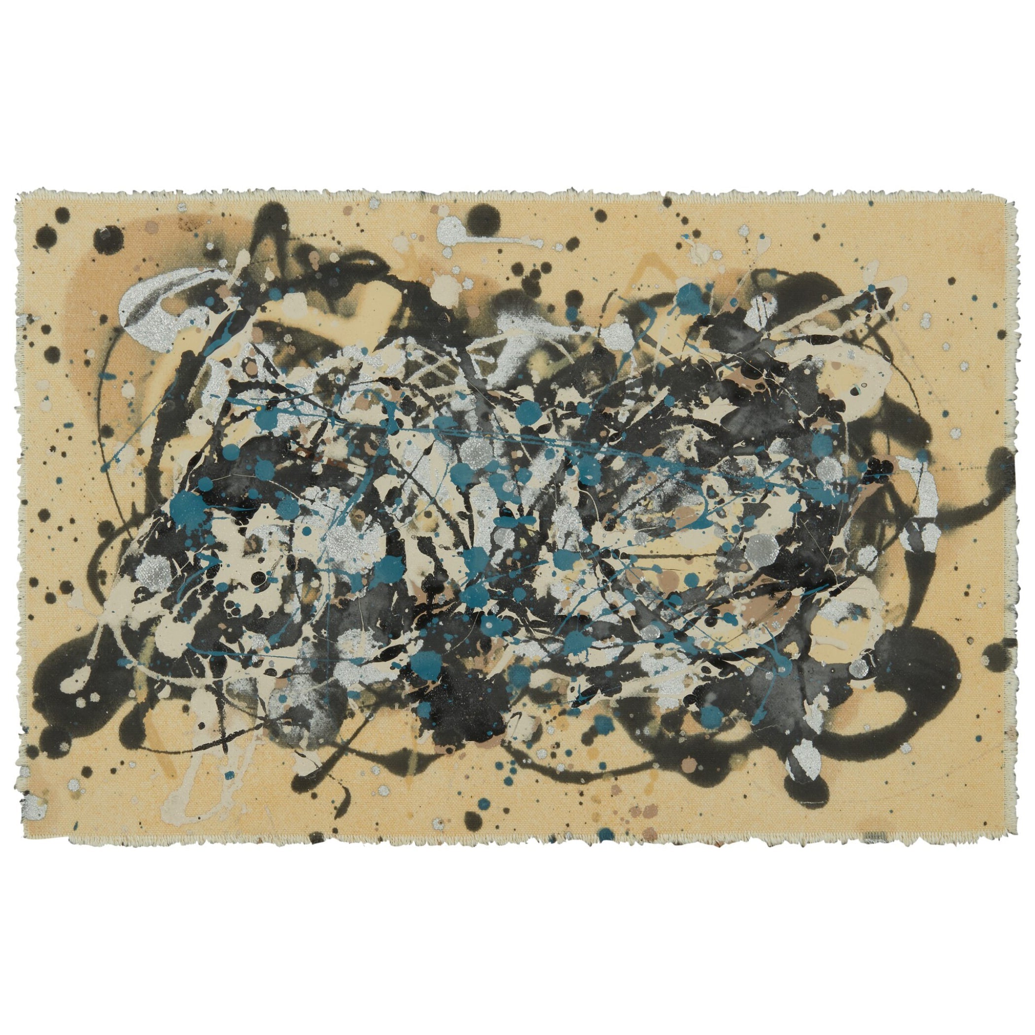 In diesem dynamischen Gemälde „Ripples“ dient ein leuchtend gelber Hintergrund als Bühne für eine faszinierende Darstellung. In der Mitte ziehen kühne blaue, schwarze und weiße Linien die Aufmerksamkeit auf sich und vermitteln ein Gefühl von Bewegung und Lebendigkeit. Erleben Sie die Macht der Kunst, wenn sich Wellen ausbreiten und Sie in eine Welt voller visueller Freude und Geheimnisse ziehen.