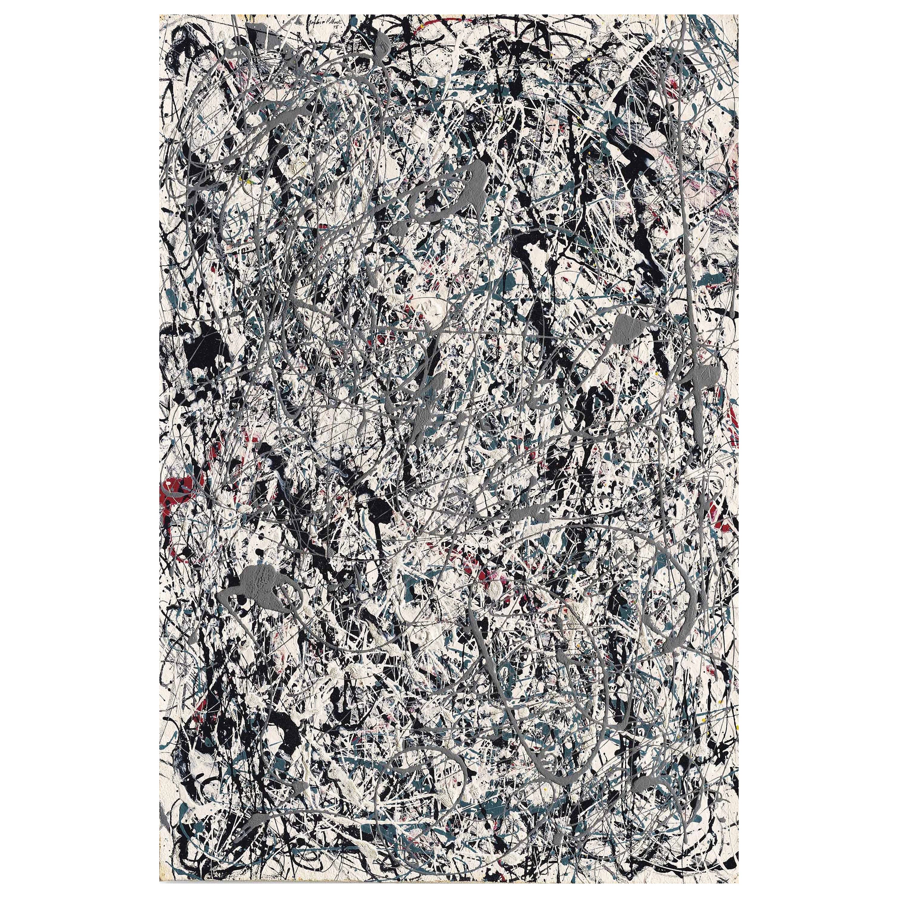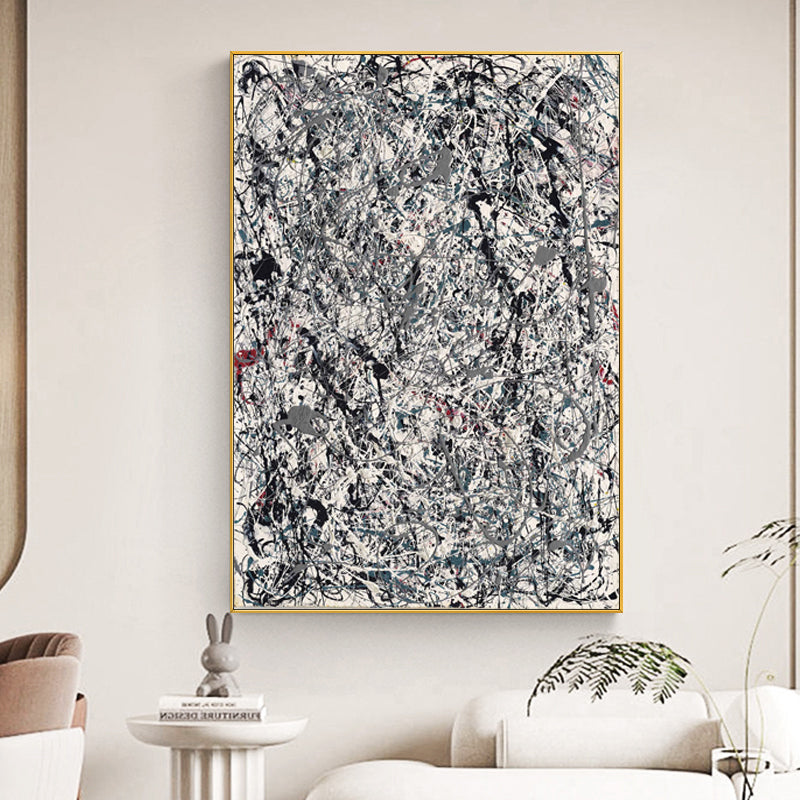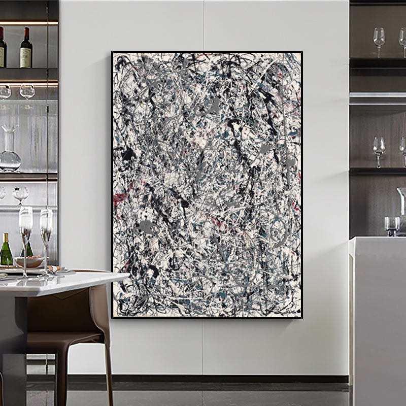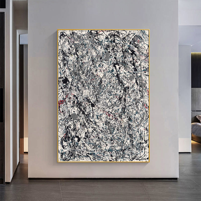 Die makellose weiße Leinwand wird zu einem komplexen Wandteppich aus wirbelnden grauen und schwarzen Linien. Die chaotische und doch wohlüberlegte Komposition entfaltet sich wie eine in Seide geflüsterte Erzählung. Tauchen Sie ein in die faszinierende Erzählung, in der jeder Strich eine Geschichte offenbart, die darauf wartet, enträtselt zu werden.