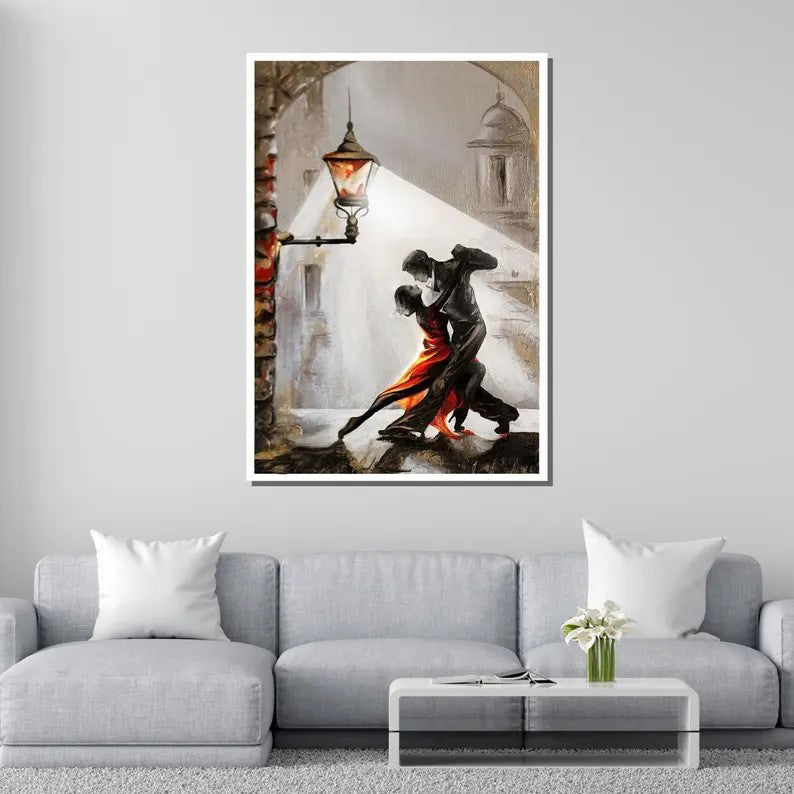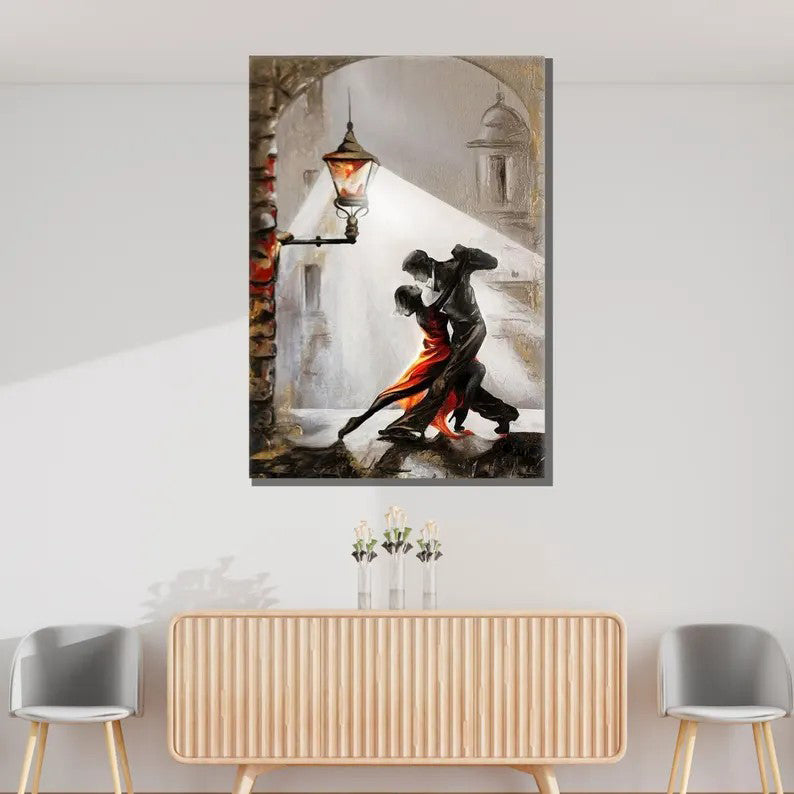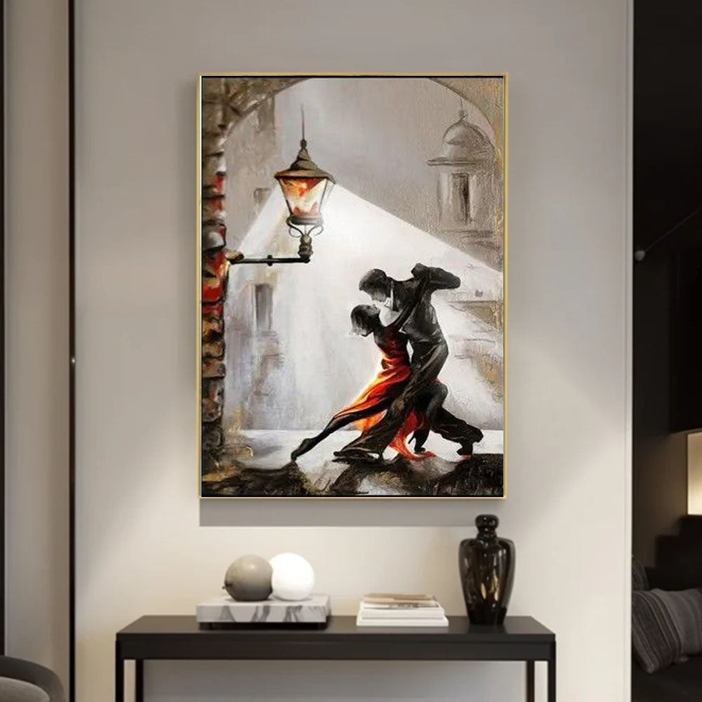 When the world sleeps, the dance begins. Tango by Night brings the drama and passion of a late-night tango to life. The strong embrace, the flowing dress, and the glow of the lantern set the scene for a stunning dance that seems to never end!