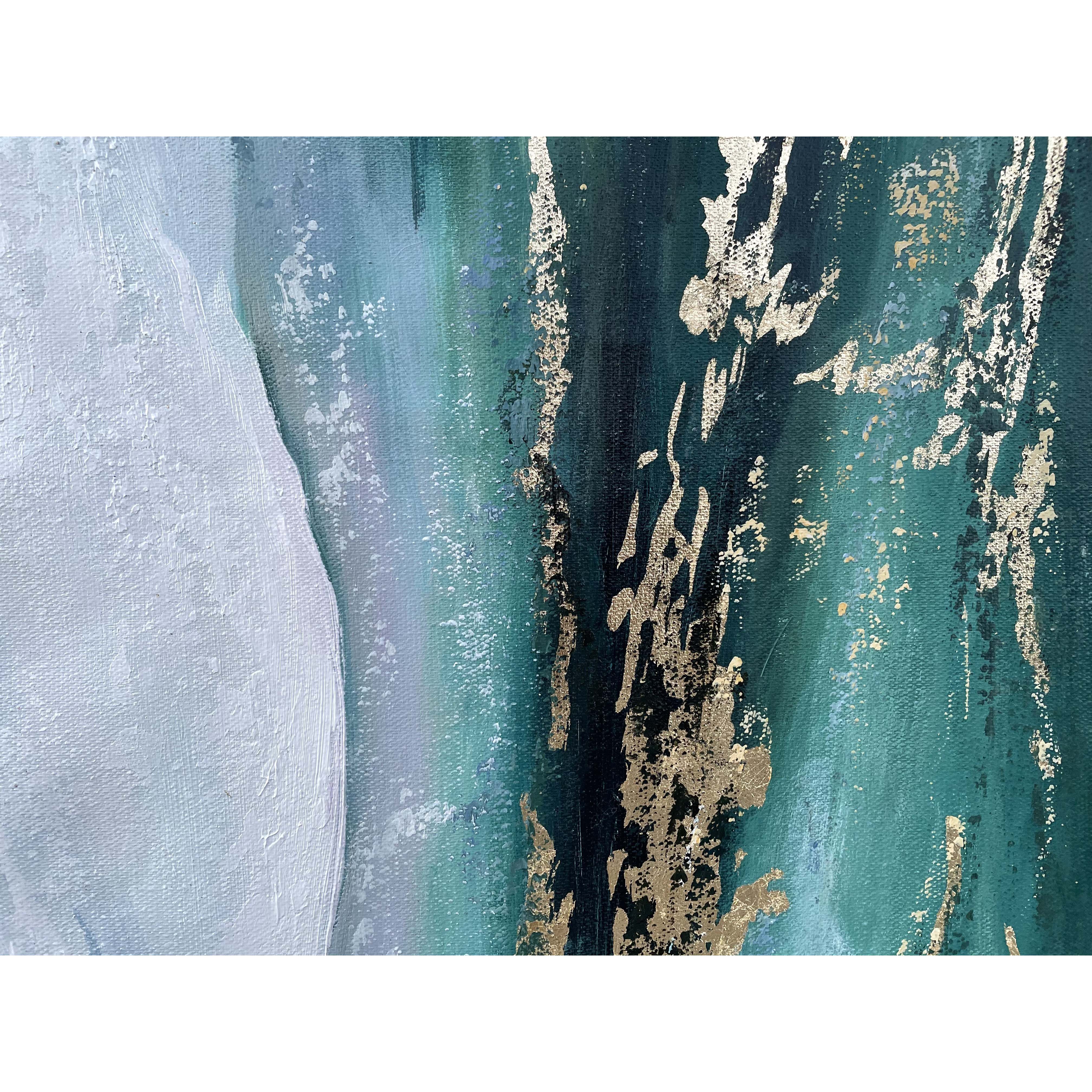 This amazing, abstract art piece portrays tremendous turquoise waves blending effortlessly with graceful, golden shores.