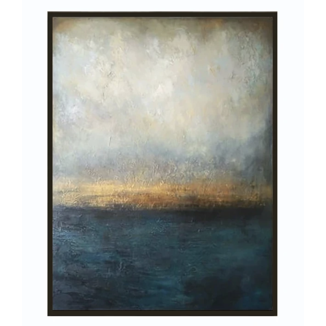 Resembling a mighty ship leaving into the misty waters, this painting brings some mystery with it! Due to its abstract nature and foggy style of painting, it captures the engaging melancholic feeling of a sailor setting sea beautifully.