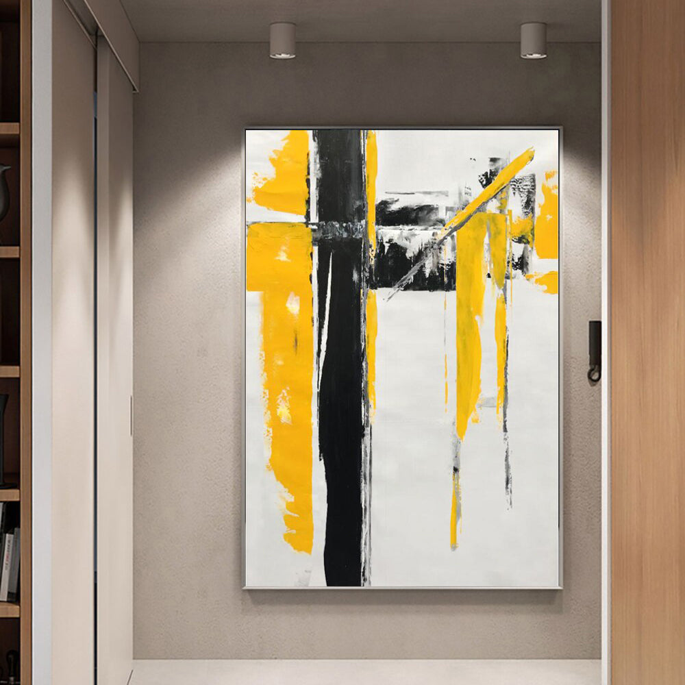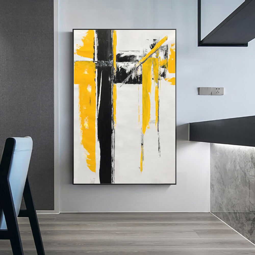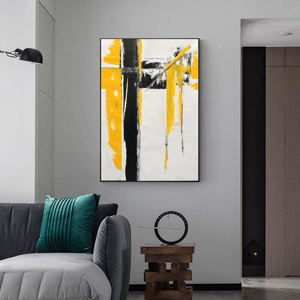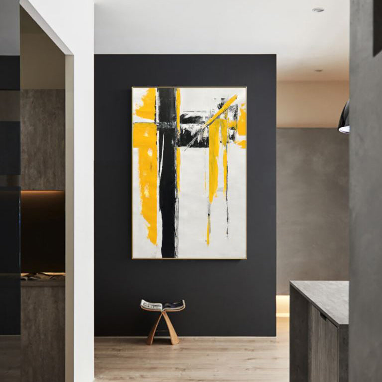 ¡Tenemos un ávido admirador de esta obra de arte abstracto y moderno! 'Avidity' es una pieza única con una hermosa composición contrastante y ricos colores amarillos. ¡Esta pieza crea un aspecto sofisticado y elegante dondequiera que se represente!