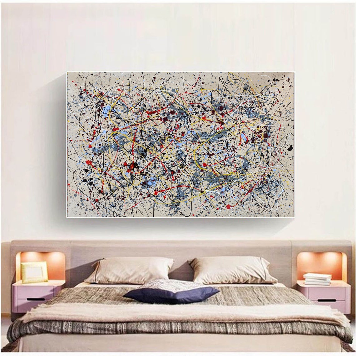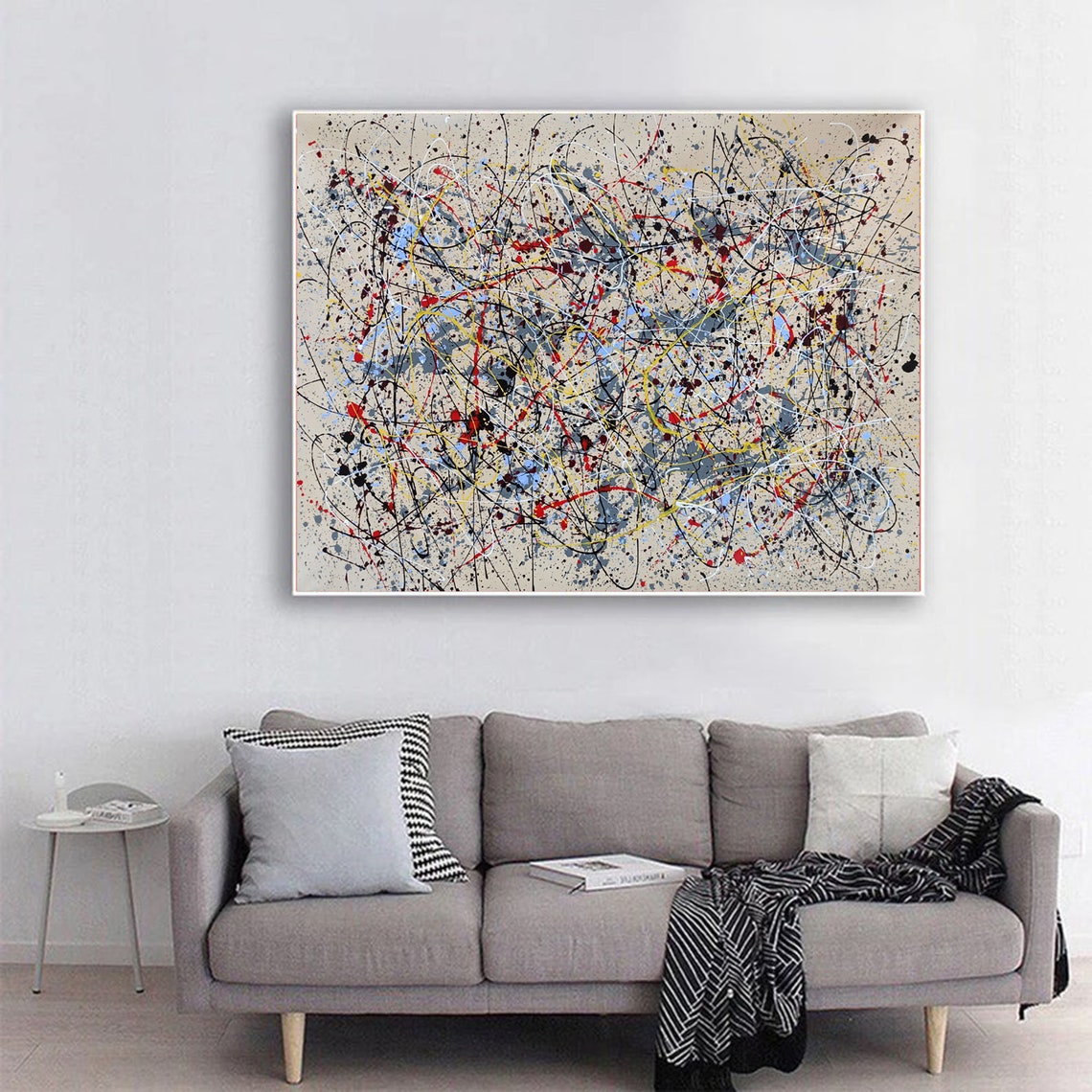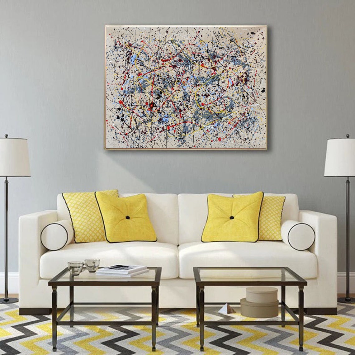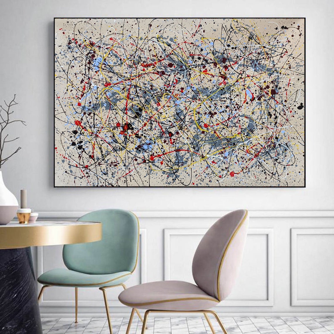 El complemento es donde el caos encuentra su ritmo. Esta pieza abstracta, inspirada en la obra de Jackson Pollock, combina toques de color y líneas entrecruzadas para crear una composición bellamente equilibrada que revitalizará y completará cualquier espacio.