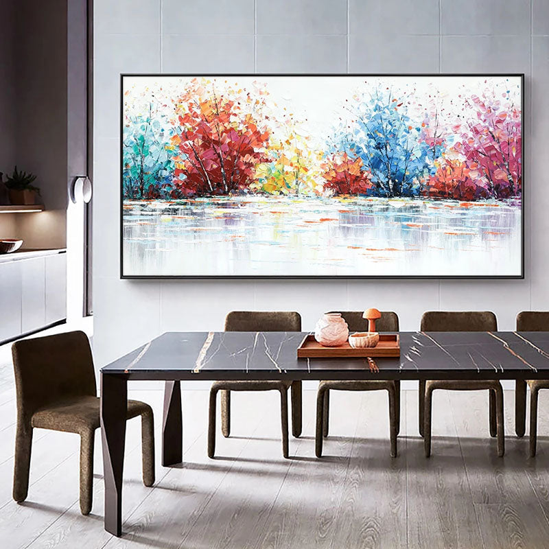 ¡Deja que esta hermosa obra de arte te lleve a lugares más coloridos! Con múltiples colores que se fusionan a la perfección, esta relajante obra de arte se adapta a cualquier tipo de decoración, realzando los colores existentes y creando una atmósfera de calma.