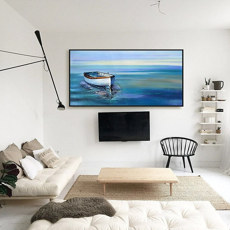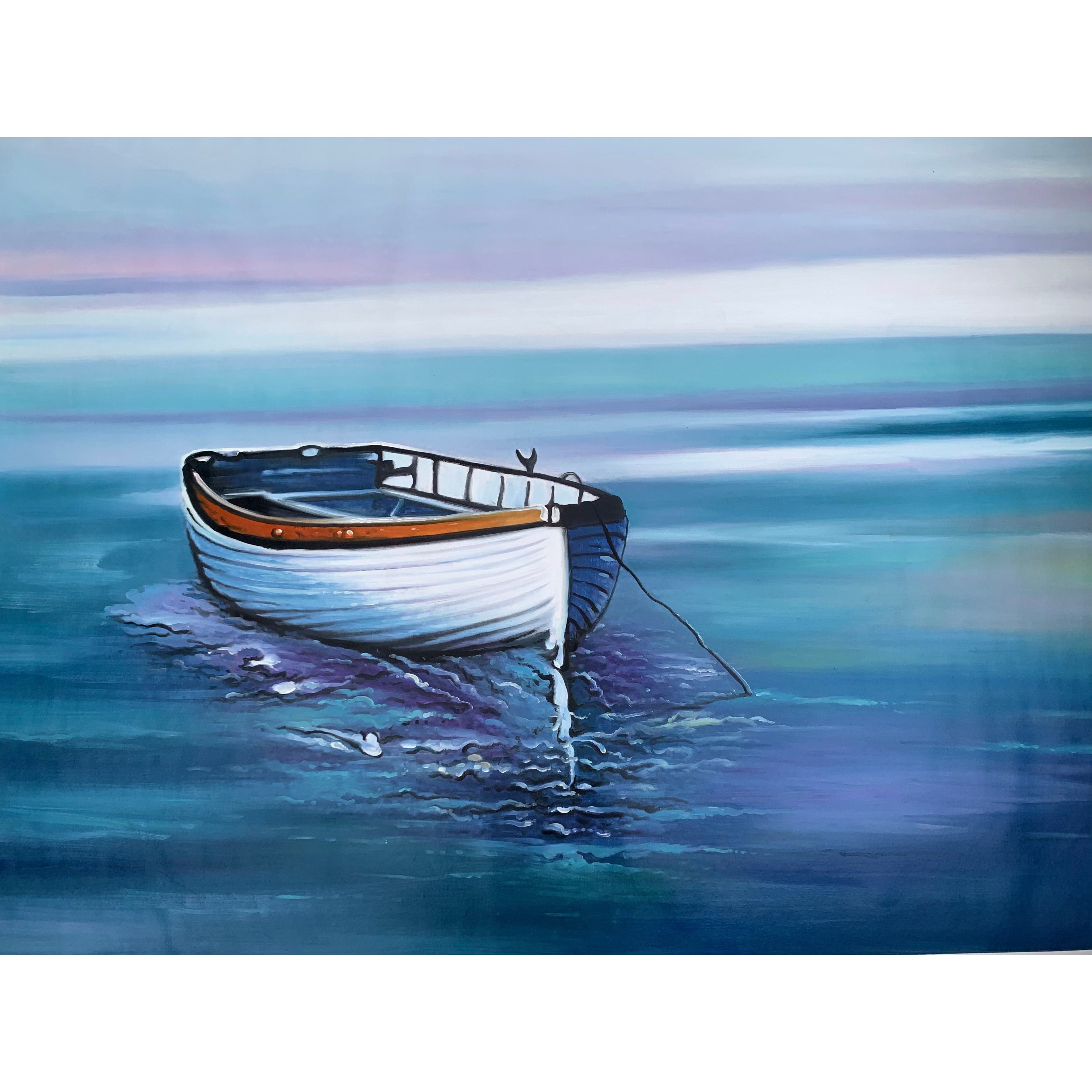 Un barco vacío abandonado en alta mar... ¿Dónde está el marinero y qué le sucedió? Esta hermosa y realista obra de arte narra la melancólica historia de un viaje en alta mar. Con detalles impresionantes y una composición intrigante, ¡esta pieza te sorprenderá!