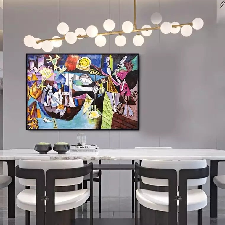¡"La noche mágica" es una composición brillante que hará que tus paredes cobren vida! Los colores son vibrantes y la imagen es maravillosa. ¡Es abstracto porque el artista quería retratar un sentimiento de asombro y asombro por la belleza de la noche!