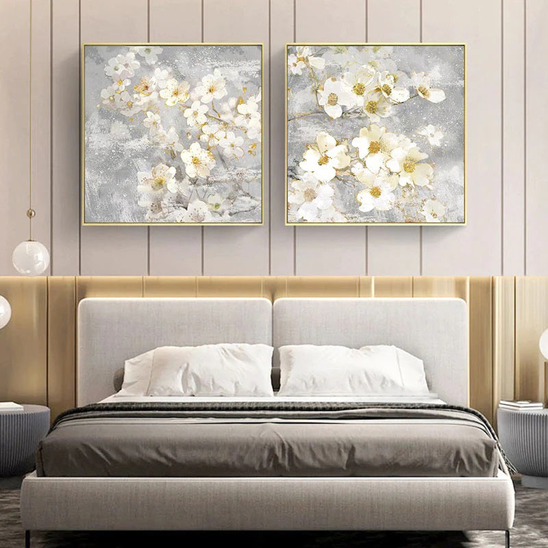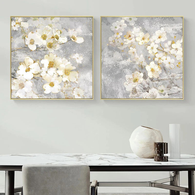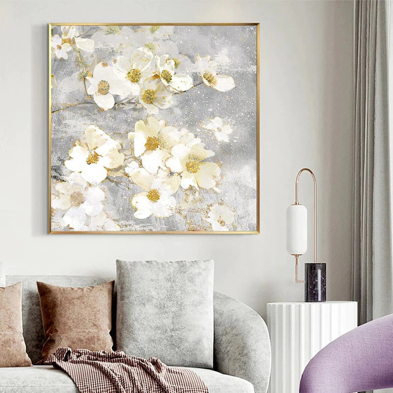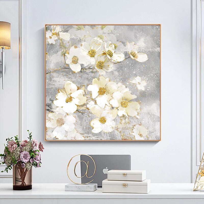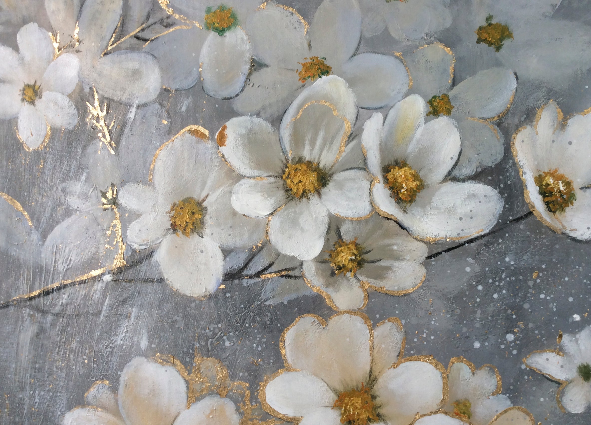 Hermosos lirios blancos atrapados en una feroz tormenta de nieve... Tan puros como vulnerables, luchan por sobrevivir a los fríos vientos invernales. Con hermosos detalles y una sutil paleta de colores, ¡esta magnífica pintura se adaptará a la perfección a cualquier interior! ¡También disponible como set de lienzo!