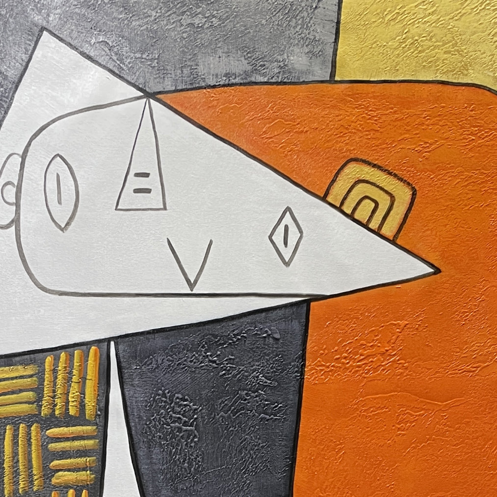 This happy abstract painting brings joy to any room or space! With its subtle and warm colours, it has the power to cheer anyone up! Inspired by Picasso's cubism painting style, this art piece has a professional yet jolly vibe.