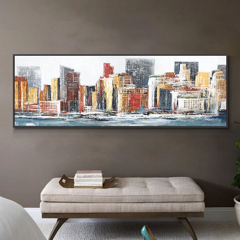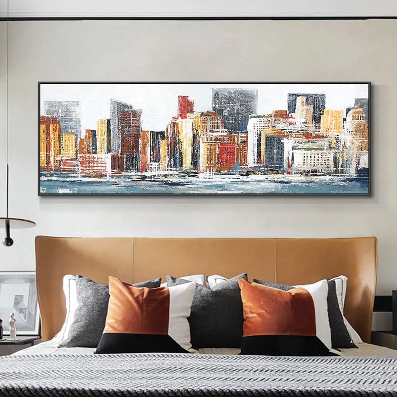 Chicago is a painting that captures the essence of the Windy City. The skyline and waterfront are both prominently featured, showcasing the city's rough beauty.