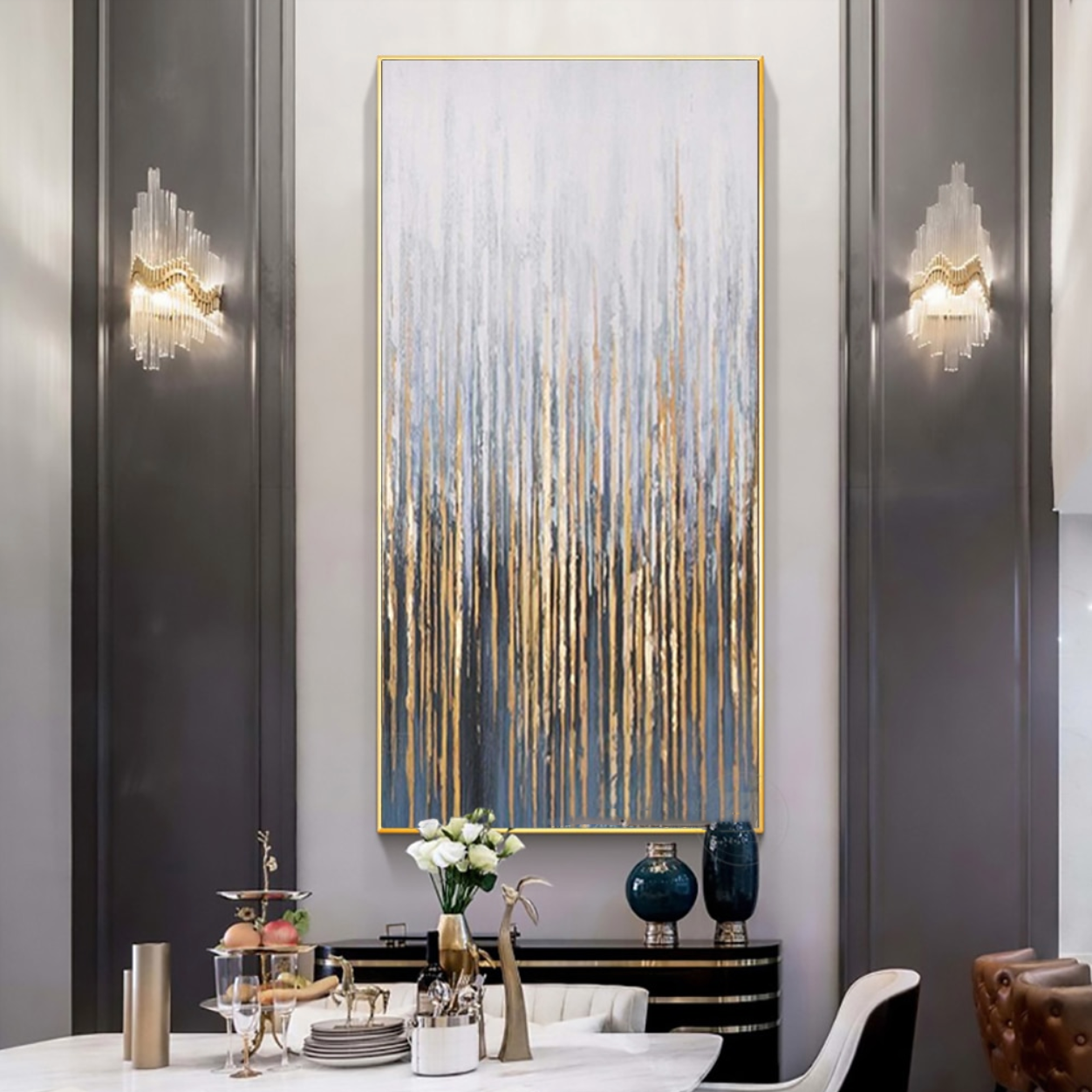 Its great, golden strokes resemble a stunning skyline, giving this painting the beauty and energy of the big city! Exquisitely hand-crafted, this art piece draws your attention and won't let go!