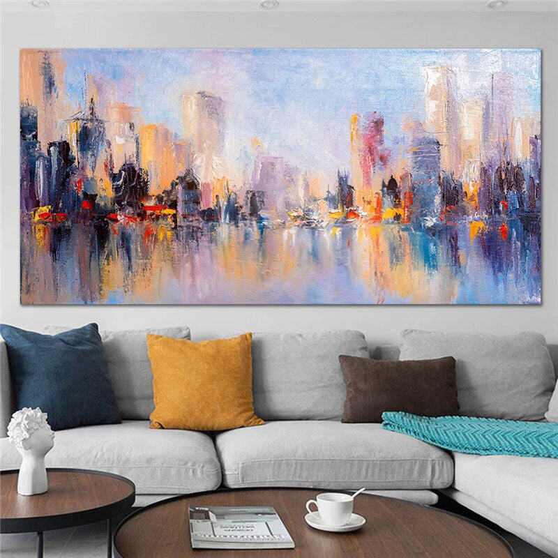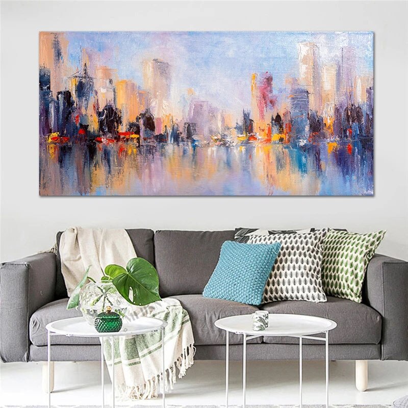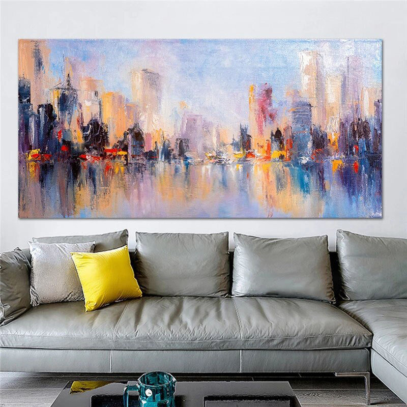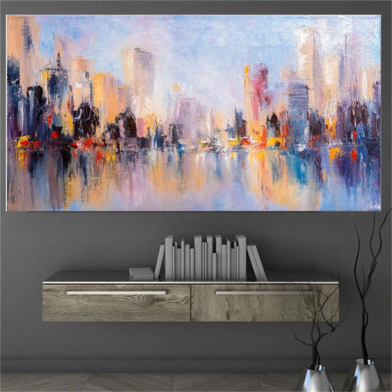 The city hums with energy as its vibrant skyline meets the tranquil waters below. This artwork captures the magic of urban reflections, bringing motion and light to your walls. Add a touch of city sophistication and artistic brilliance to your home with this unique artwork!