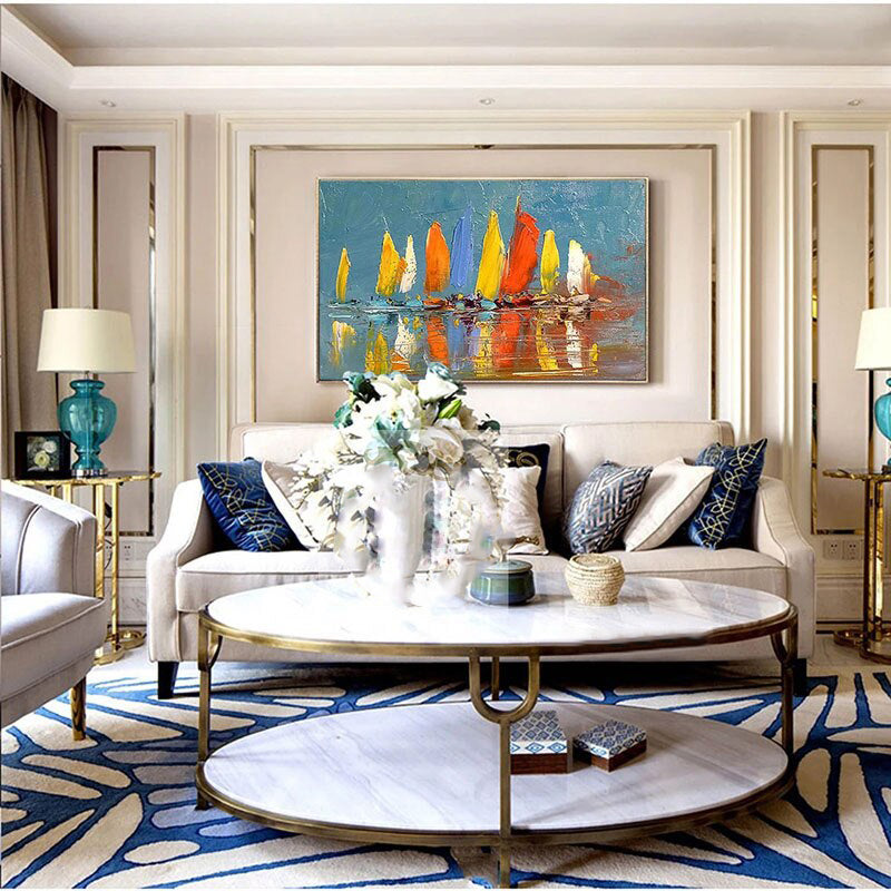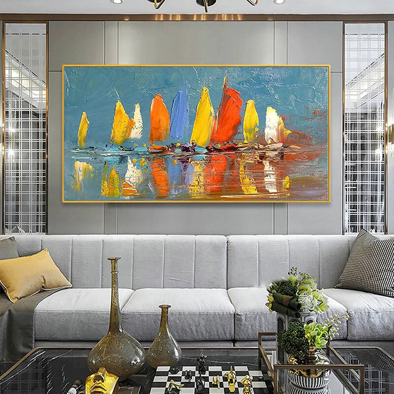 All aboard for the 'Colored Seafarers'! This vibrant art piece brings a beautiful mix of colors in an impressionistic style. The subtle strokes of color create a soothing, maritime atmosphere, suited for any type of home interior! ⁠