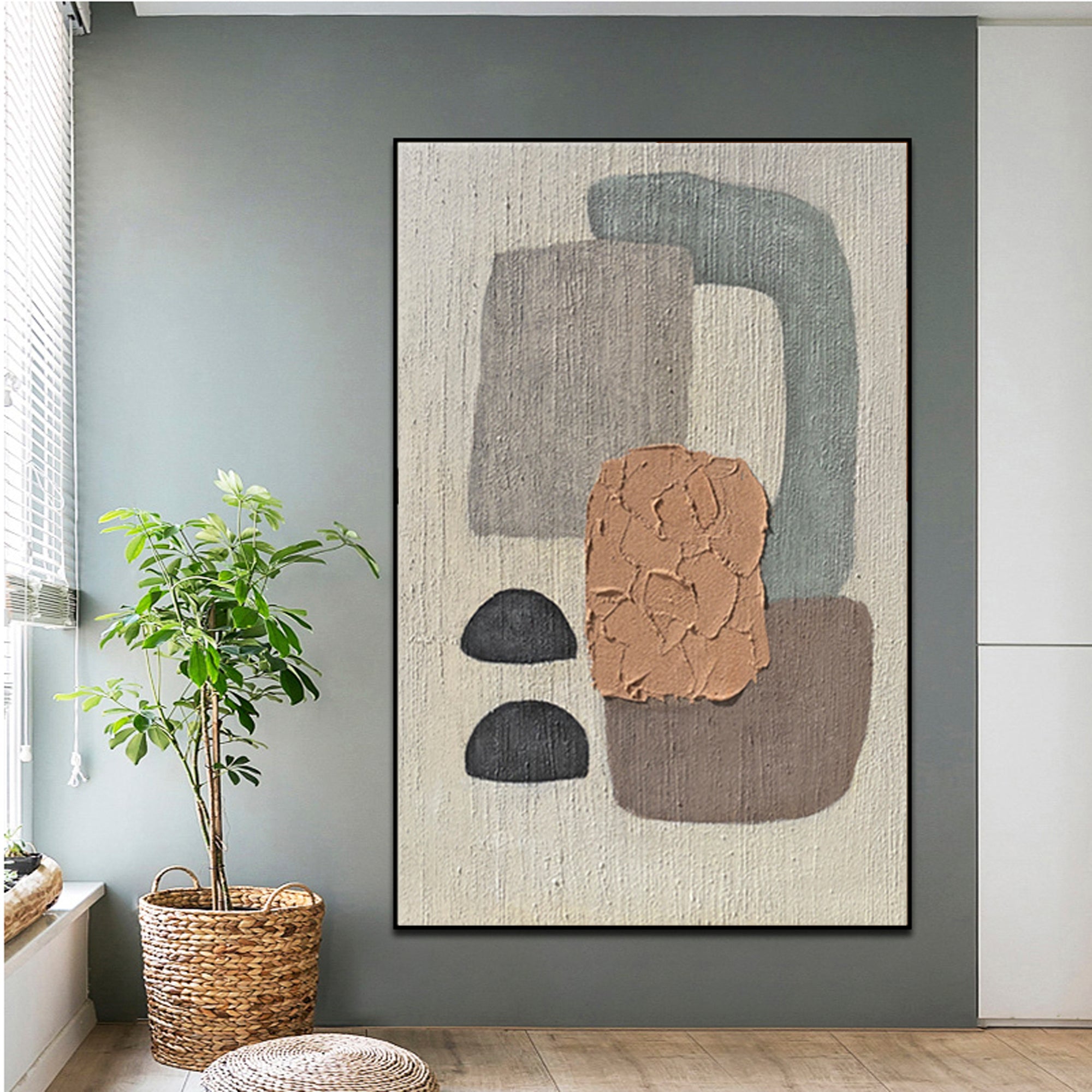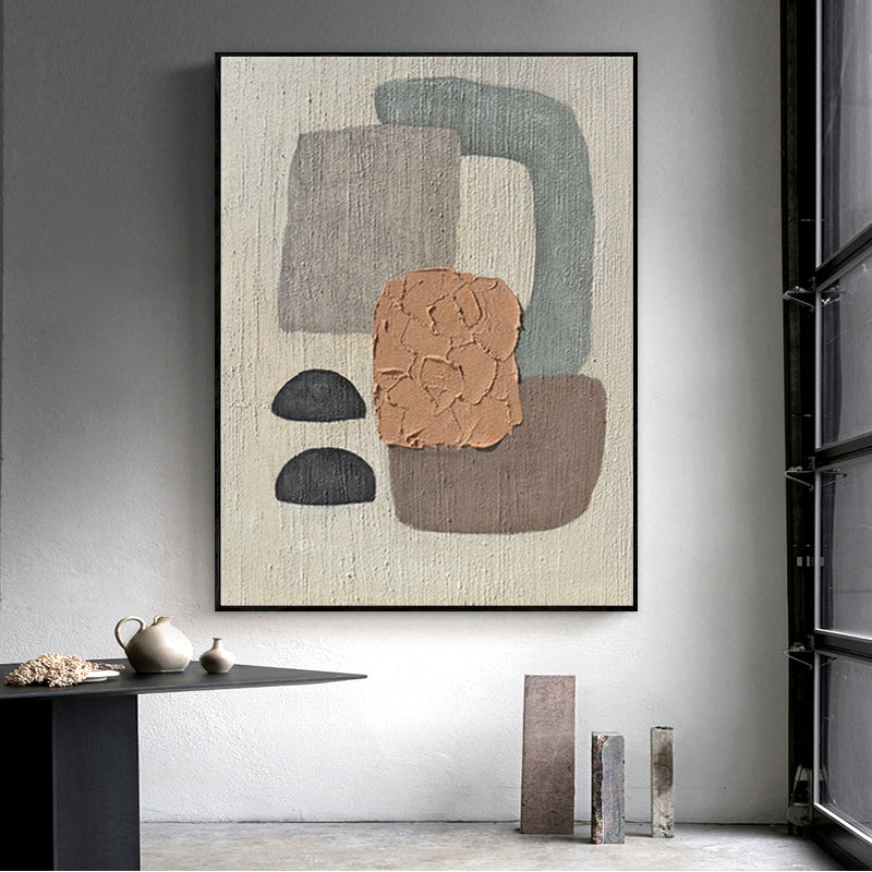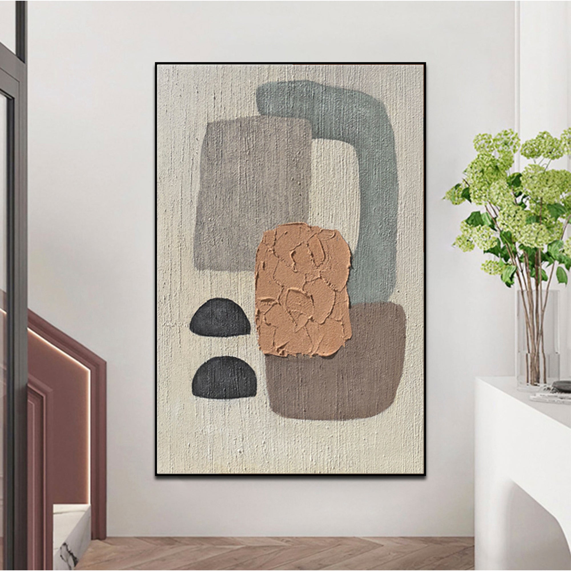 A unique artwork all in harmony with itself'. This artwork 'Concords' tells a story of different colored shapes all balancing together beautifully. Its subtle color palette makes this painting suited for any type of home interior! ⁠