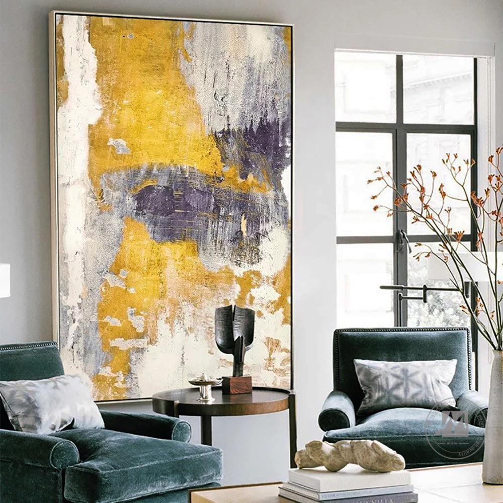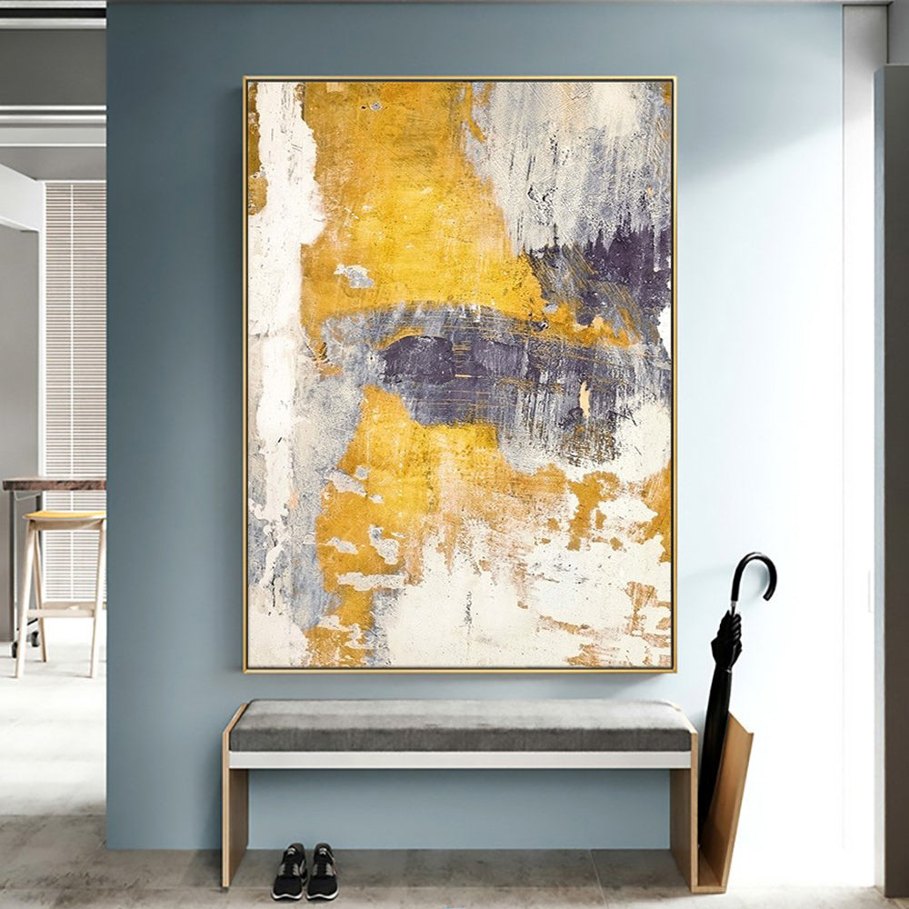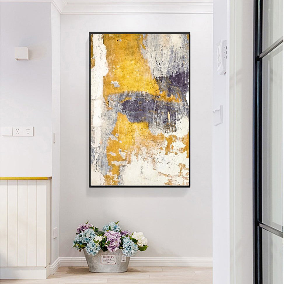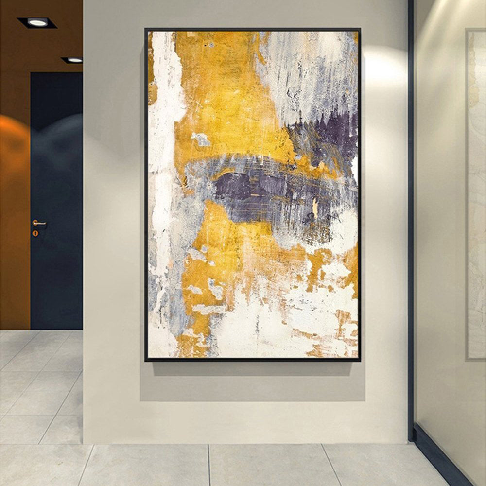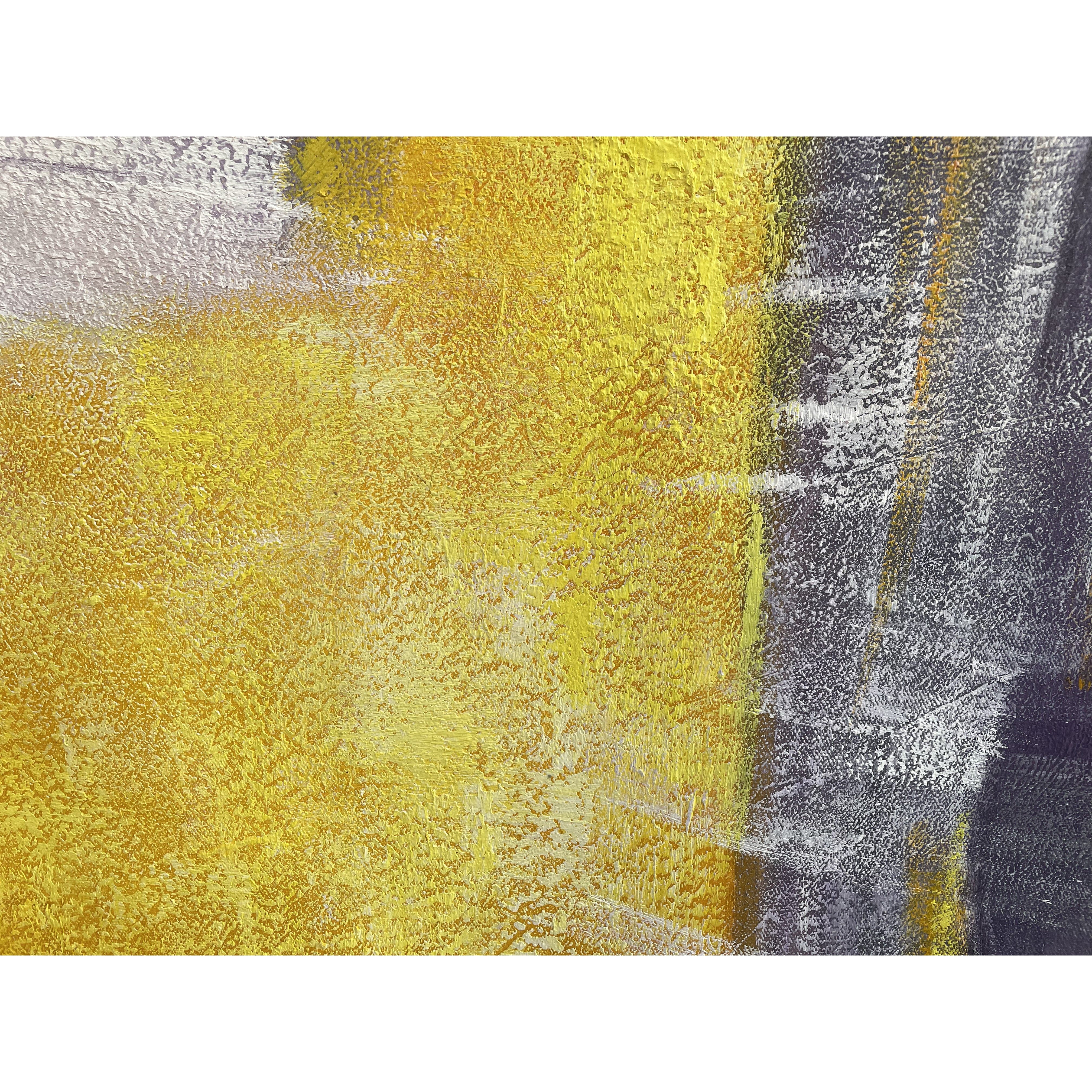 Electric Zoo is a painting with bright yellow colors and a playful composition. It is named after the popular New York City music festival, and its similar, vibrant energy is sure to brighten up any room.