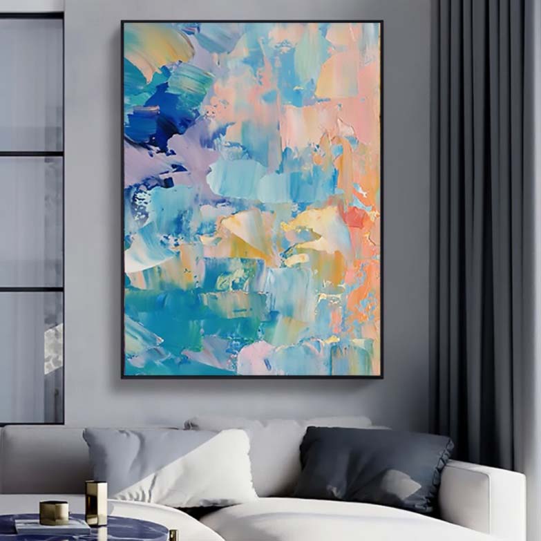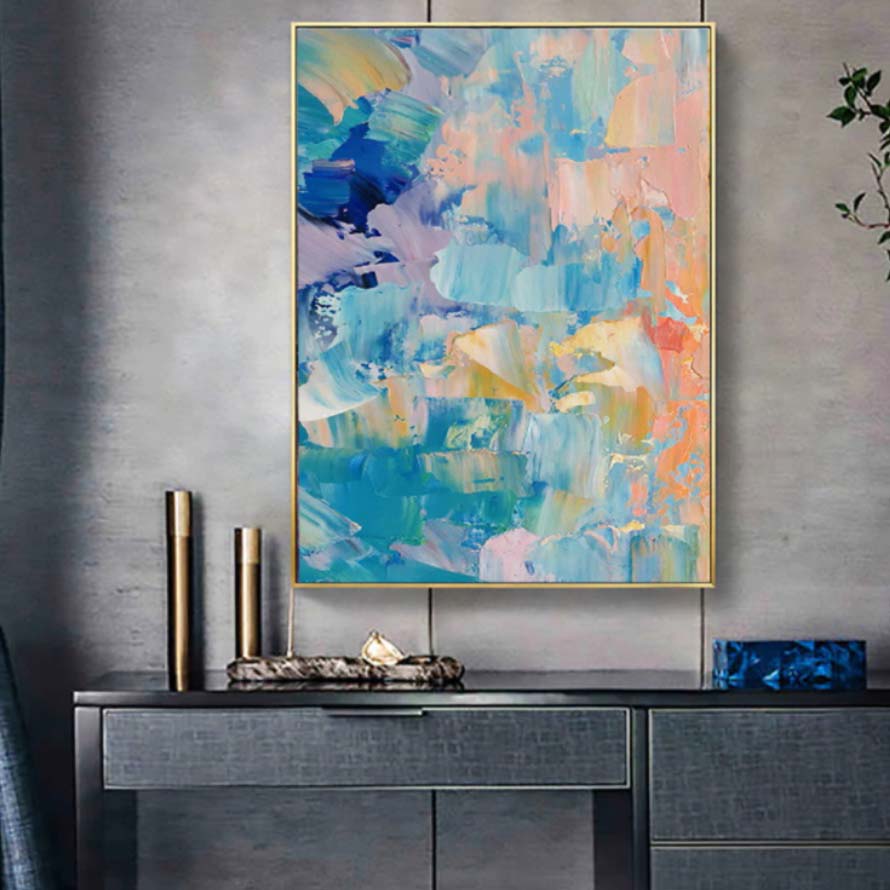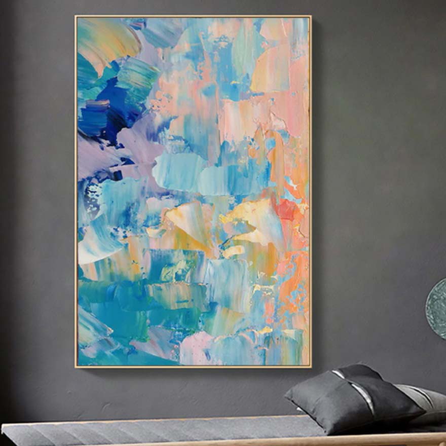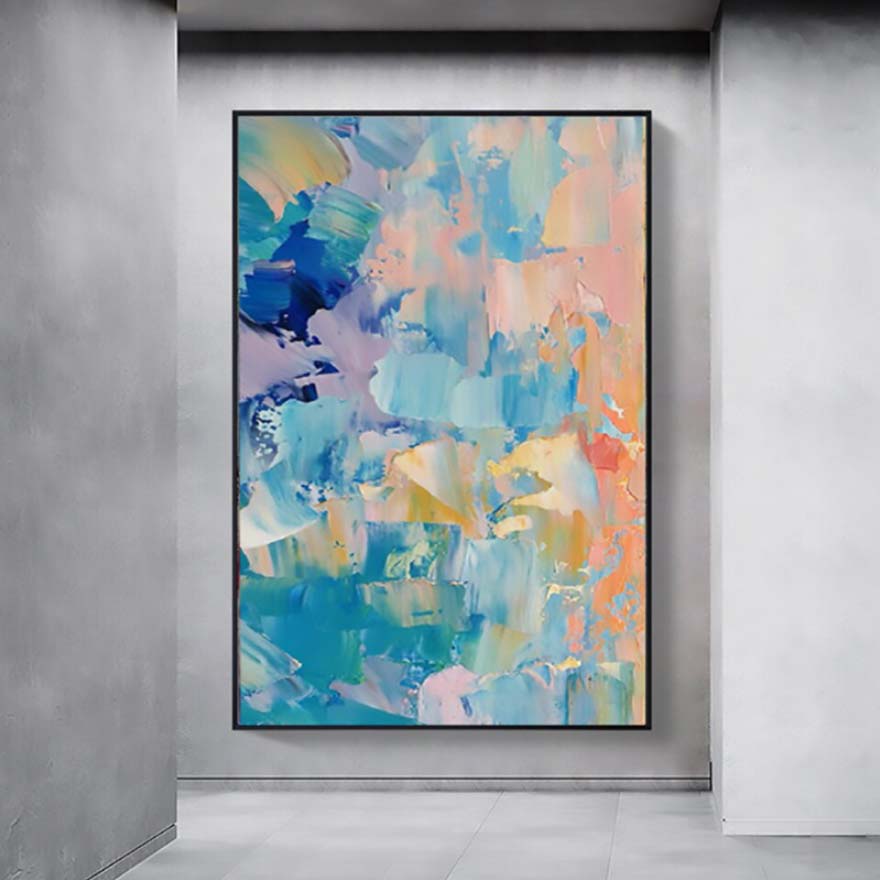 Bursting with beautiful, vivid colours, this abstract art piece sweeps you off your feet! Through the use of surprising and extraordinary colours, a rich and vibrant play of paint is created. Both soothing and captivating, this painting leaves its mark wherever it's hung.