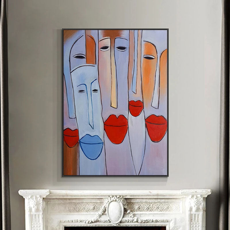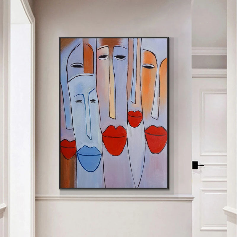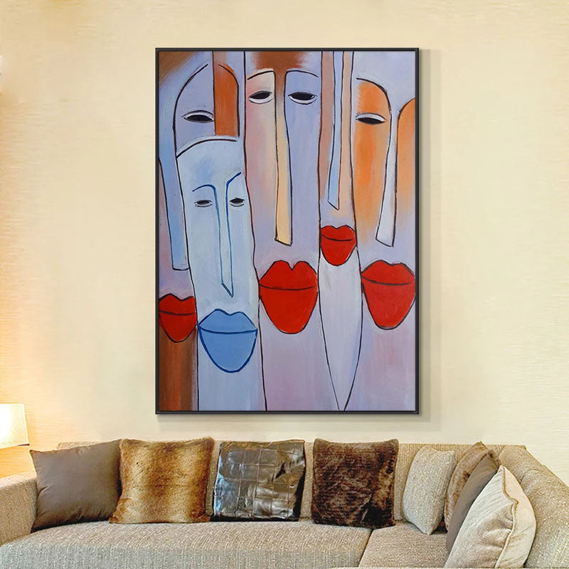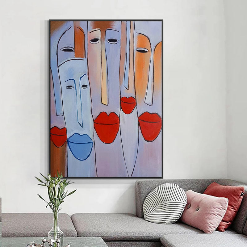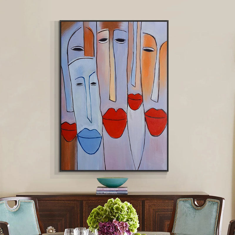 Full of personality and charm, this artwork combines bold shapes and playful lips to create something truly unique. A tribute to unity and friendship, perfect for creating a welcoming atmosphere in home interior!