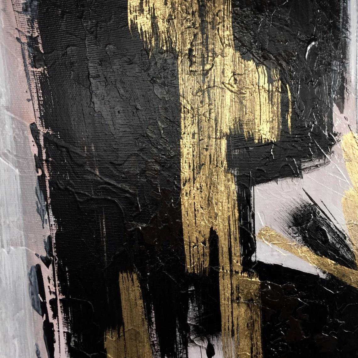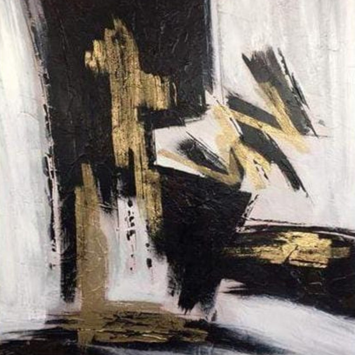 Unlock the secrets of desire with "Infatuation," an abstract masterpiece where bold strokes of black, white, and gold collide in a symphony of emotions. Each brushstroke tells a story of longing and obsession, drawing you deeper into the canvas.