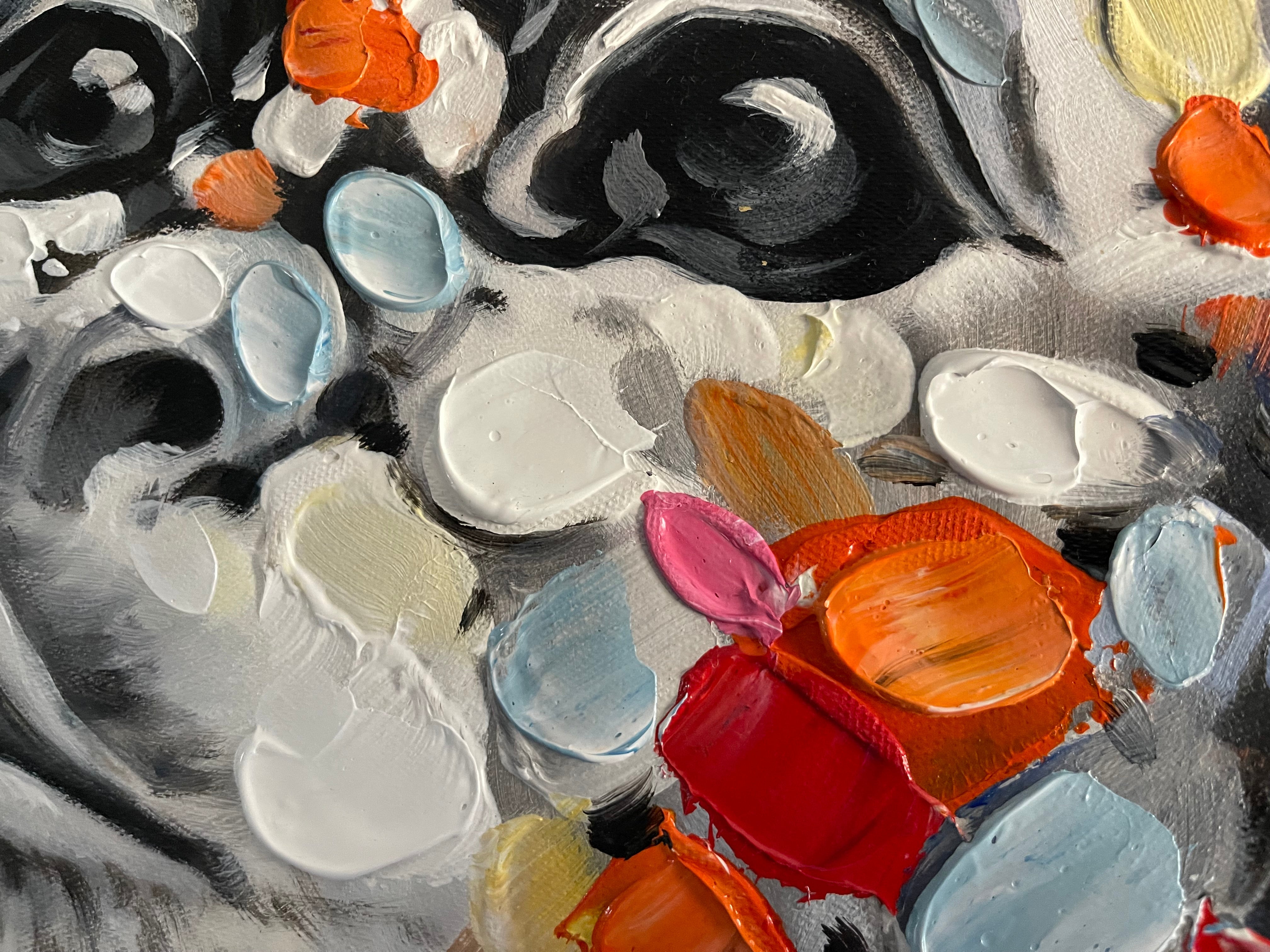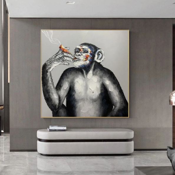 Meet 'Koba', one of the coolest monkeys we have ever seen! He is just minding his own business and living his best life! His colorful face creates a beautiful contrast with the black & white background, making this amazing ape almost come alive!