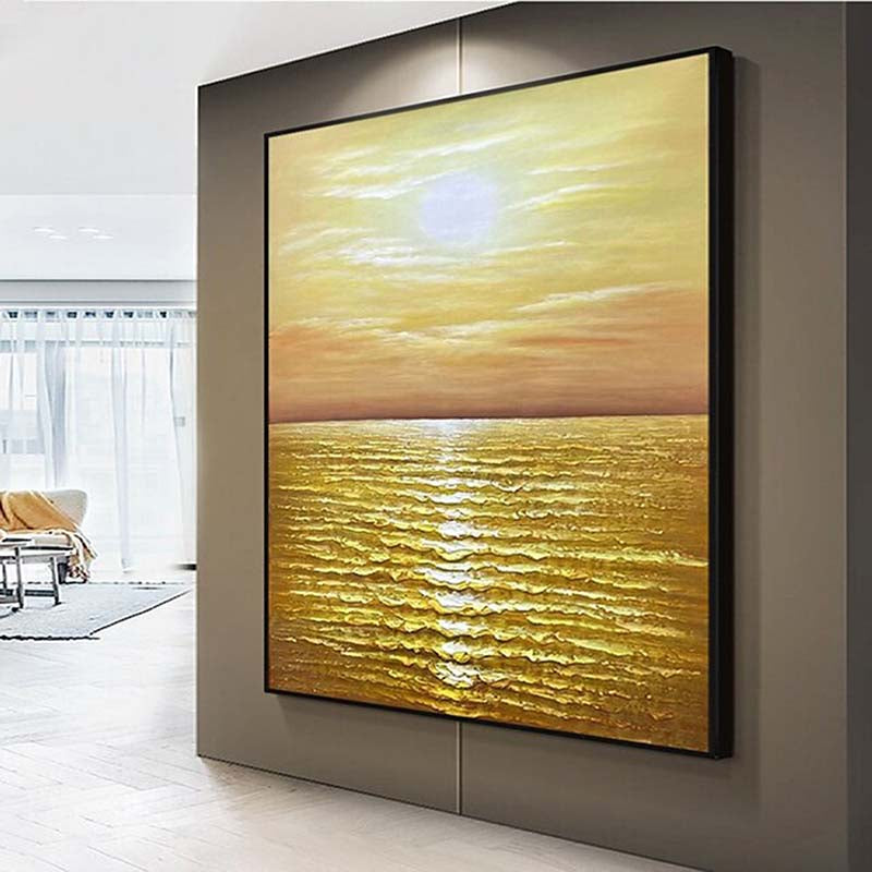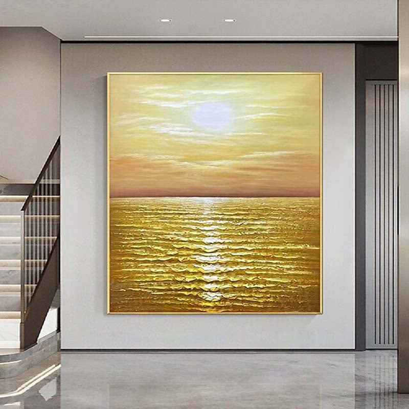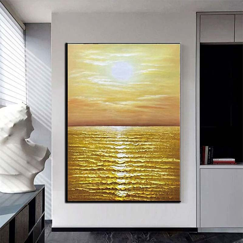This golden seascape captures the serene beauty of a sunset, creating a warm and inviting atmosphere. Its luminous colors bring a touch of magic to any space or room.