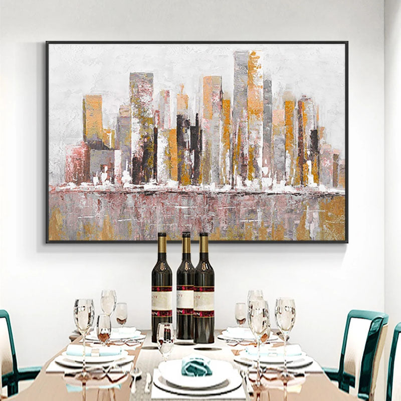 Lost in the city, yet surrounded by its towering embrace. A huge Metropolis that ignites the soul and commands the gaze. This vibrant artwork captures the awe-inspiring allure of a skyline that never ceases to amaze.⁠