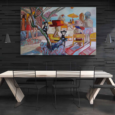 Express shipping is free for all paintings, with 100% insurance coverage. Paintings are carefully packaged to prevent damage. Framed paintings ship via DHL Express; rolled canvas paintings via FedEx and UPS Express.