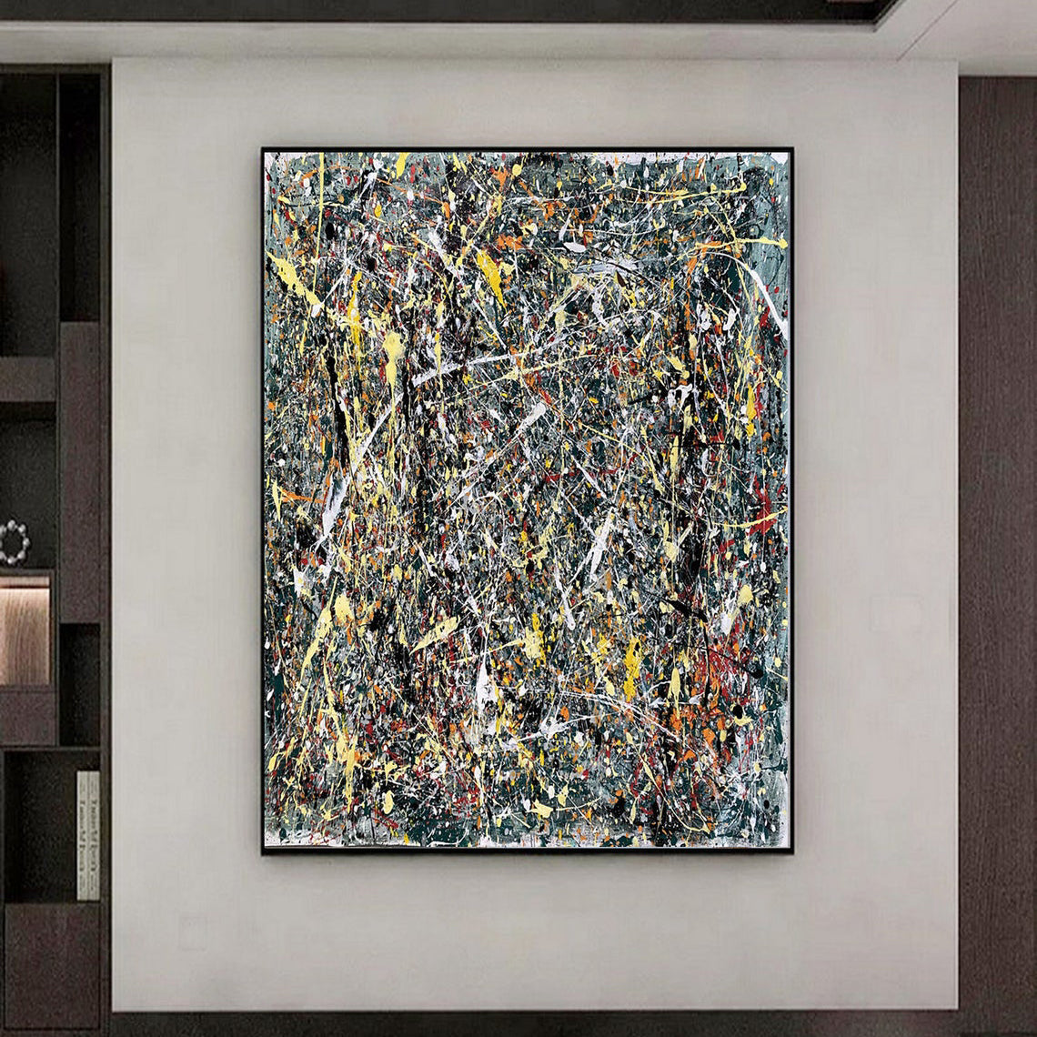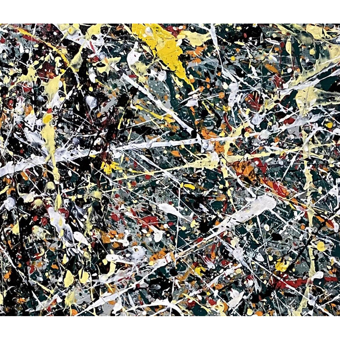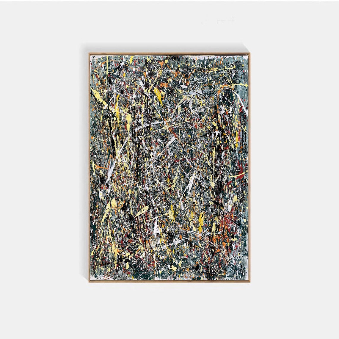 Pollock's inspired 'Solemn' captures the quiet energy of reflection through its intricate web of colors and movement. This painting balances bold strokes with deep thought, making it a striking yet meditative addition to your space.