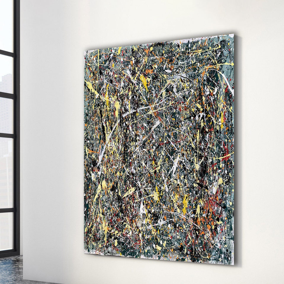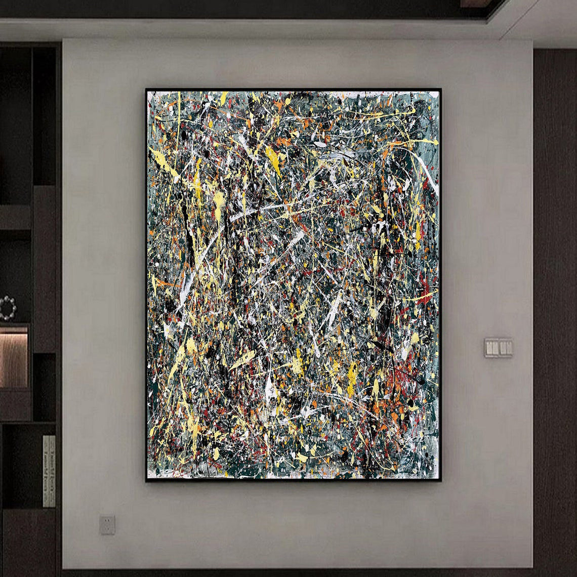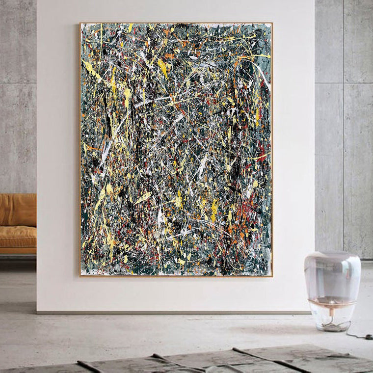 Pollock's inspired 'Solemn' captures the quiet energy of reflection through its intricate web of colors and movement. This painting balances bold strokes with deep thought, making it a striking yet meditative addition to your space.