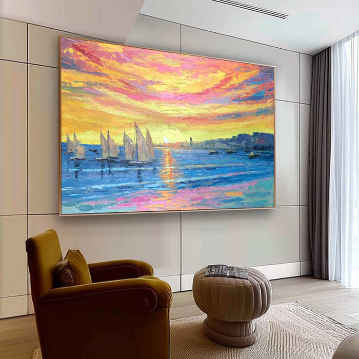 Express shipping is free for all paintings, with 100% insurance coverage. Paintings are carefully packaged to prevent damage. Framed paintings ship via DHL Express; rolled canvas paintings via FedEx and UPS Express.
