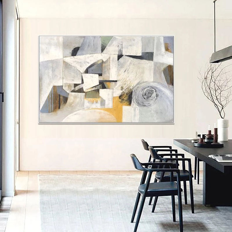 Behold this impressive artwork! With a unique abstract style and a lot of Multiple shapess, this piece is full of surprises! Ride along the wave of paint like a true surfer and relax with the subtle tones of this artwork!