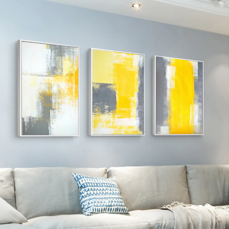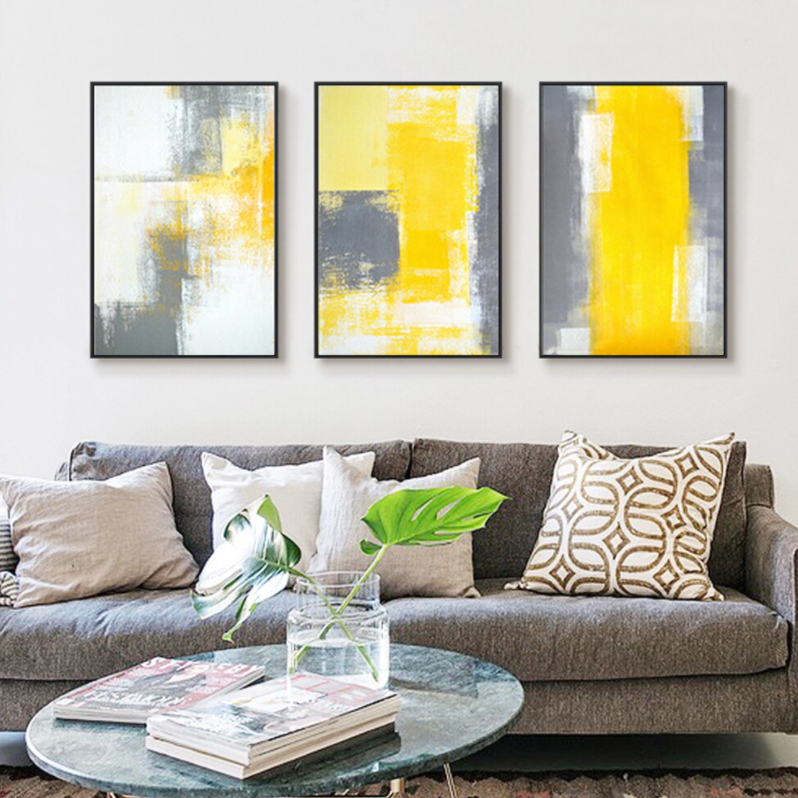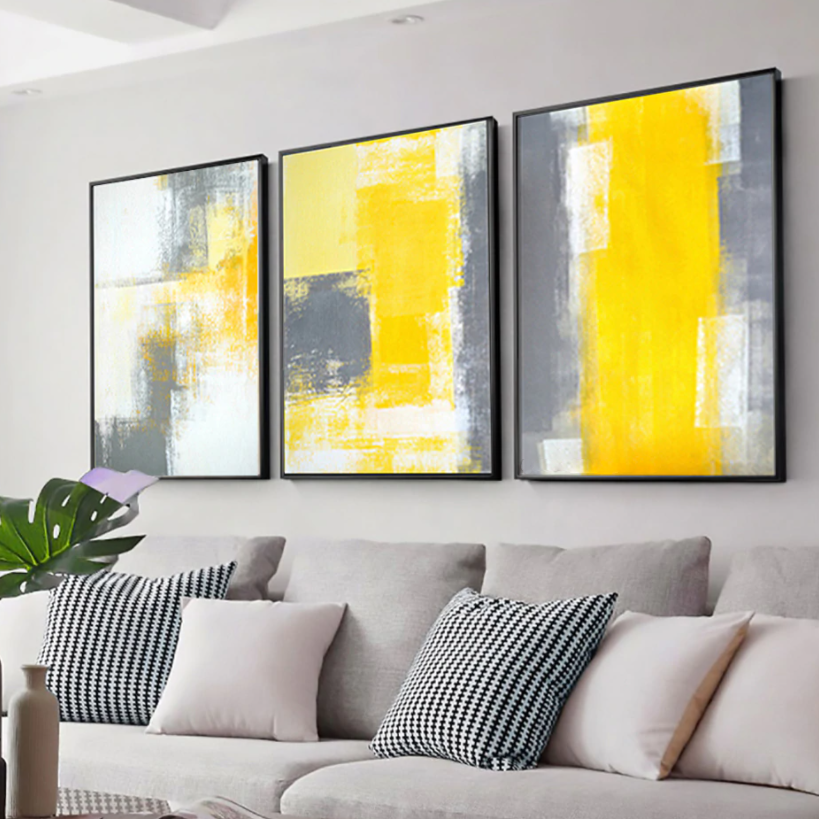 Doesn’t this canvas set make you long for a tropical destination? The vibrant yellow colors create a warm and sunny atmosphere. Also, it contrasts beautifully with the black and white, making this set a cheerful addition to any interior!