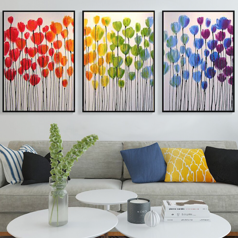 Did you know that the tulip is the national flower of the Netherlands? Inspired by these colorful fields, is this vibrant canvas set ‘Tulip’. The rainbow of colors makes this set always stand out, like a flower in a field!