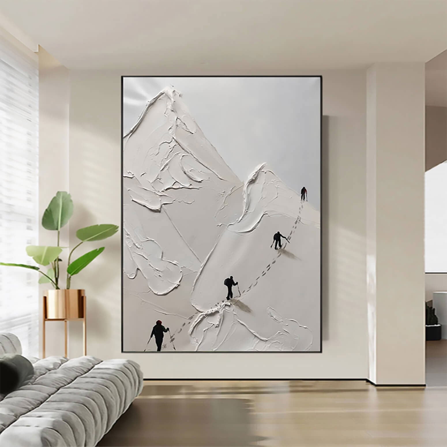 Look at these brave hikers conquering a massive mountain! This special artwork displays the journey of a lifetime in a unique style. The different painting styles used in this composition, make the hikers truly come alive. Making this painting a rich addition to any space or room! ⁠